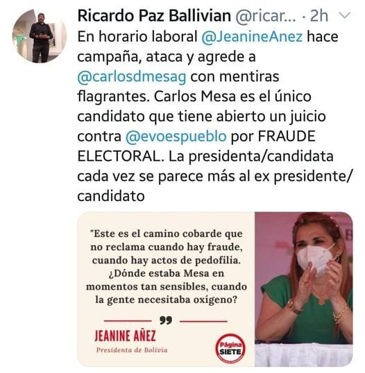El Andaluz Digital Ricardo Paz Ballivian, vocero de la alianza Comunidad Ciudadana (CC) a través de su cuenta de twitter