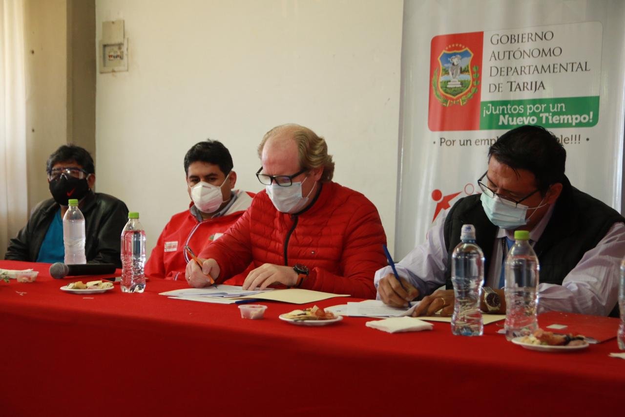 Este acuerdo ha sido suscrito la mañana de este jueves en inmediaciones del estadio IV Centenario, donde estuvieron presentes el gobernador de Tarija, Adrián Oliva, el viceministro de Empleos, Álvaro Tejerina, el director General de Empleo, Gilardo Toledo, la directora del Servicio Departamental de Empleo (Sedem), Lily Morales y el director de la Micro y Pequeña Empresa, Gregorio Subelza.