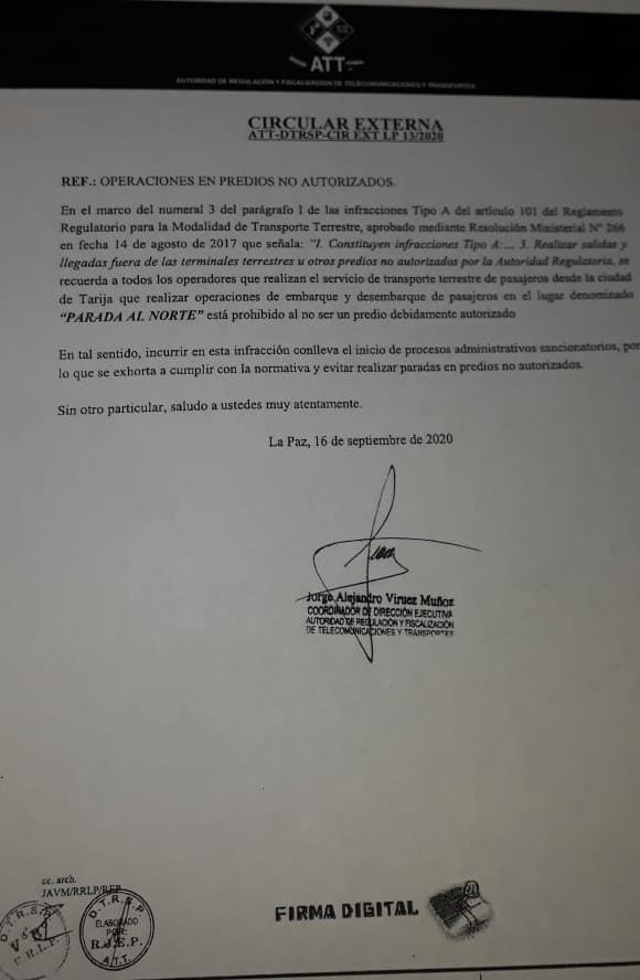 El Andaluz Digital A través de un comunicado oficial la Autoridad de Regulación y Fiscalización de Telecomunicaciones y Transporte (ATT)