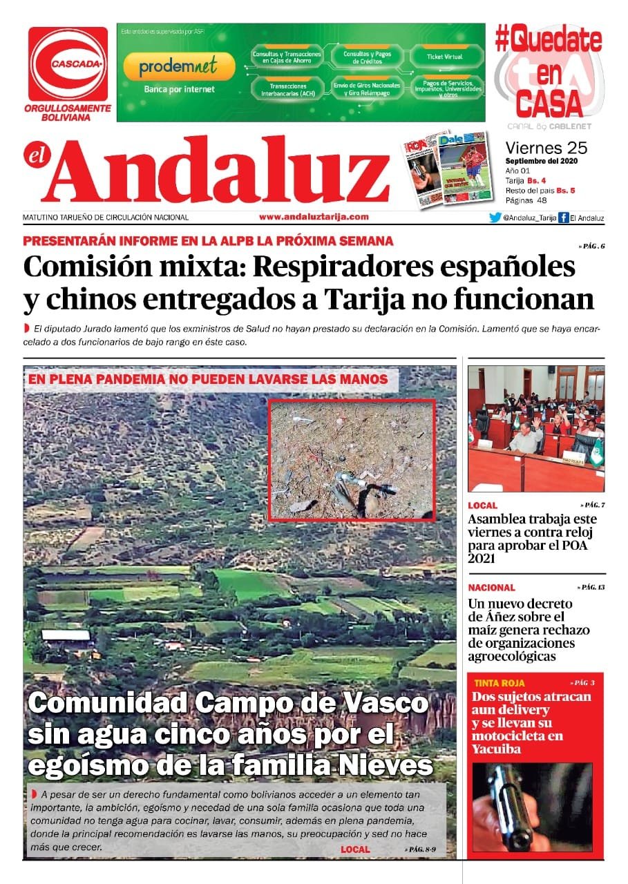 Navegación de entradasComisión mixta: Respiradores españoles y chinos entregados a Tarija no funcionan Portada