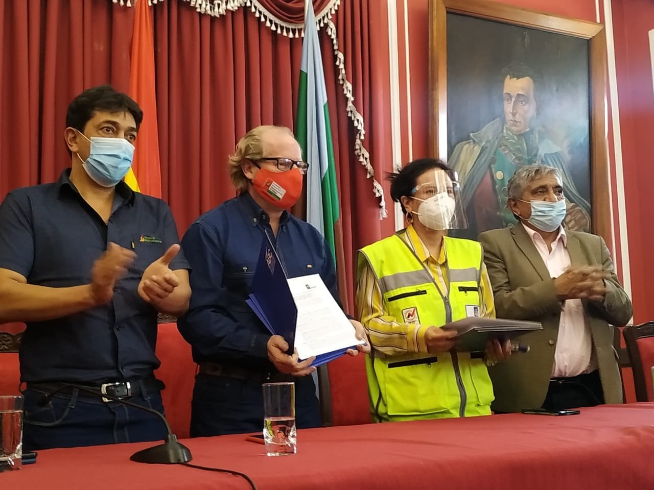 El Ministro de Obras Públicas, Servicios y Vivienda (MOPSV), Iván Arias; la Presidenta de la Administradora Boliviana de Carreteras (ABC), Ruth Ramírez Mattos; y el Gobernador de Tarija, Adrián Oliva; firmaron hoy, un convenio que establece la entrega a la ABC del tramo Canaletas – Gareca – Entre Ríos (variante Canaletas – Entre Ríos), y la entrega a la GADT del tramo Canaletas – Narváez – Entre Ríos.