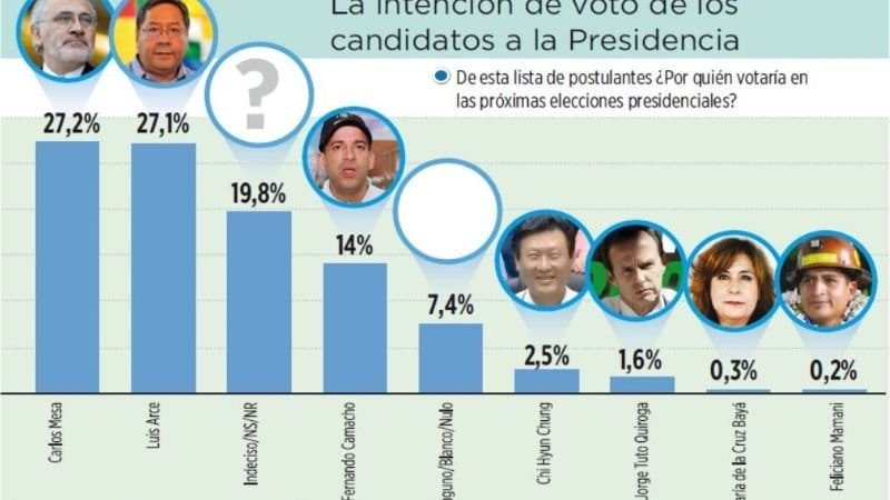 Página Siete Carlos Mesa, postulante de Comunidad Ciudadana (CC), y Luis Arce, candidato del Movimiento Al Socialismo (MAS), están empatados