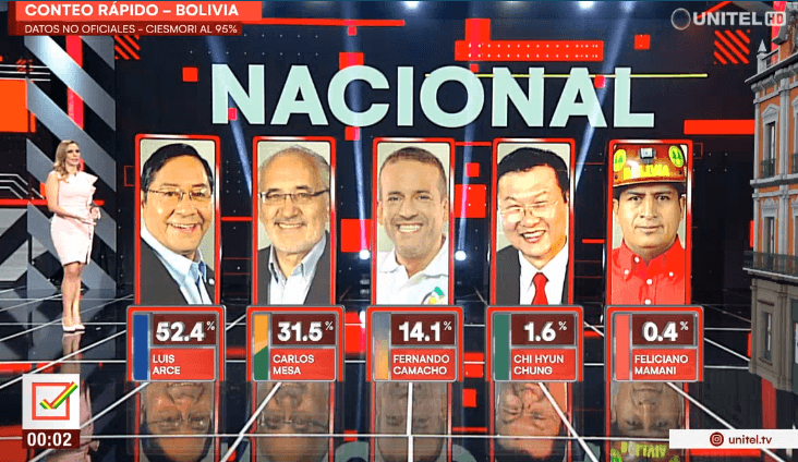 Paliza de Luis Arce a Carlos Mesa y Luis Camacho en boca de urna