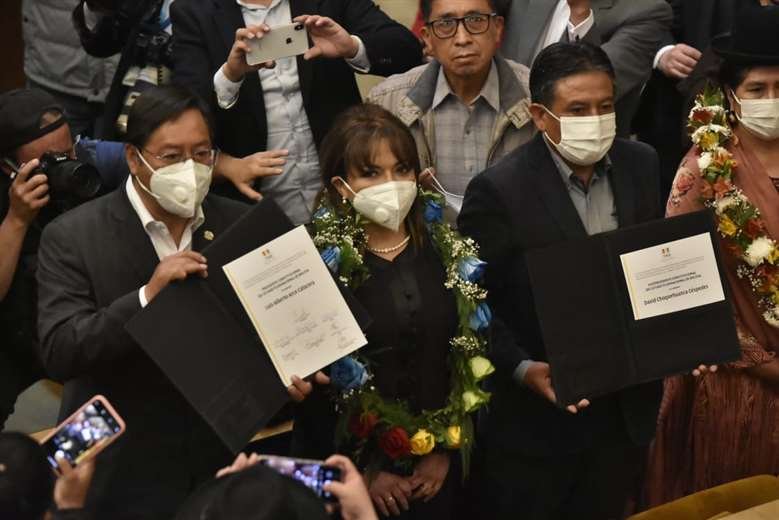 El Deber Luis Arce y David Choquehuanca recibieron la mañana de este miércoles sus credenciales como presidente y vicepresidente electos en los
