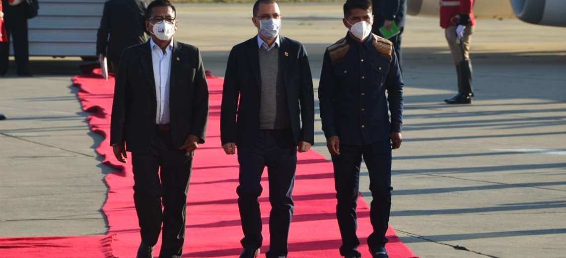 El canciller de Venezuela, Jorge Arreaza, arribó hoy al aeropuerto de El Alto para participar mañana de la posesión de Luis Arce como presidente de Bolivia. El dignatario venezolano no emitió declaraciones y recibió los saludos protocolares por parte de la banda militar del regimiento Colorados de Bolivia-Escolta Presidencial.Arreaza llegó un avión de la línea estatal venezolana Conviasa y estuvo acompañado de una comitiva del gobierno venezolano. El funcionario, que fue recibido por el presidente del Senado, Andrónico Rodríguez, recibió honores presenció un pequeño acto folklórico en el aeropuerto de El Alto. Luego, fue condecorado por autoridades regionales.En la gestión de Jeanine Áñez se rompió relaciones con el gobierno de Nicolás Maduro y se acercó Juan Guaidó, quien fue invitado por el gobierno saliente. La comisión transitoria del Movimiento Al Socialismo (MAS) invitó al presidente venezolano, pero Maduro desistió de acudir al evento de posición y envió a su canciller. Navegación de entradasLa Fiscalía anula caso bombas molotov y libera a Wilma Alanoca, refugiada en la embajada mexicana El Rey de España se reunirá con Luis Arce después del acto de transmisión de mando