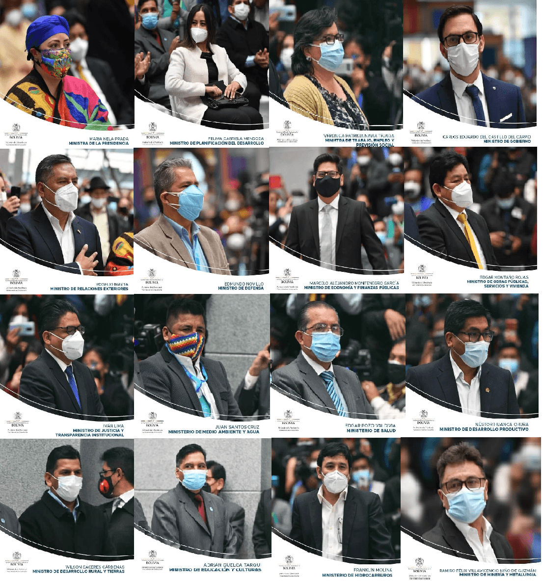 REDACCION CENTRAL// EL ANDALUZEl presidente Luis Arce posesionó ayer a 16 ministros, en el cual ninguno de los nombrados estuvo en el cargo anteriormente ni fue parte del Gabinete de Evo Morales.De los 16 ministros, tres son mujeres y el resto son varones. Entre ellos están exfuncionarios, activistas, dirigentes, académicos y políticos.El Gabinete de Arce se redujo en uno respecto al de Jeanine Añez. Arce no posesionó a un Ministro de Energías.El mandatario anunció también que repondrá el Ministerio de Culturas, cuando se realicen los ajustes normativos necesarios, y que una mujer asumirá ese cargo.1) Ministro Relaciones Exteriores – Rogelio Mayta Hasta el 2018, Mayta fue el abogado defensor de las víctimas de octubre del 2003, además fue parte del comité impulsor del juicio contra Gonzalo Sánchez de Lozada. En julio de 2019 fue candidato a senador por el Movimiento Al Socialismo (MAS).2) Ministra de la Presidencia – Maria Nela Prada TejadaEs licenciada en Relaciones Internacionales, fue directora de Gabinete del Ministerio de Economía y Finanzas Públicas (cuando Arce era ministro de esa cartera). Es hija de los políticos Betty Tejada (ex asambleísta por el MAS) y Ramón Prada (quien fue prefecto durante el gobierno de Banzer).3) Ministro de Gobierno – Carlos Del Castillo del CarpioAbogado, ejerció como Oficial Mayor en la Cámara de Senadores de la gestión pasada. 4) Ministro de Defensa – Edmundo NovilloDe Cochabamba, Novillo fue alcalde de Totora, diputado por el MAS y gobernador de Cochabamba.5) Ministro Planificación del Desarrollo – Felima Gabriela MendozaEs experta en gestión y diseño de políticas públicas. Fue parte del directorio de Banco Unión, pero renunció, junto a los otros directivos, después de destaparse el caso de desfalco al Banco. El 2019 asumió como directora del campo ferial Chuquiago Marka.6) Ministro de Economía – Marcelo Alejandro Montenegro Gómez GarcíaFue jefe de la Unidad de Análisis y Estudios Fiscales del Ministerio de Economía, presidente de directorio del BDP (Banco de Desarrollo Productivo) y recientemente director del Instituto de Investigaciones Económicas de la Universidad Mayor de San Andrés.7) Ministro de Obras Públicas – Edgar Montaño RojasEs ingeniero industrial, fue diputado (MAS) por Santa Cruz.8) Ministro de Hidrocarburos – Franklin Molina OrtizFue viceministro de Desarrollo Energético entre 2010 y 2015, jefe de planificación de la ATT (Autoridad de Regulación Fiscalización de Telecomunicaciones y Transportes) entre 2009 y 20109) Ministro Desarrollo Productivo y Economía Plural – Néstor HuancaFue director del Ministerio de Desarrollo Productivo y también ejerció como viceministro de producción industrial a mediana y gran escala.10) Ministro Minería – Ramiro Félix VillavicencioIngeniero metalúrgico, fue representante de la Empresa Metalúrgica Vinto.11) Ministro Justicia – Ivan Manolo LimaAbogado de profesión, Socio fundador de una firma de abogados, docente, fue magistrado del Tribunal Supremo de Justicia.12) Ministra de Trabajo – Verónica Patricia NaviaSocióloga y asesora estatal.13) Ministro de Salud – Edgar PozoMédico cirujano de profesión, reconocido Doctor Honoris Causa por la “Universidad Rafael Guizar y Valencia” de los Estados Unidos de México. Entre los cargos más importantes, fue viceministro de Previsión Social (1989-1993), presidente de la Caja Nacional de Caminos (2000-2002), jefe del servicio de hemodinámica (2009-2013), jefe del departamento de Cardiología (2013-2016) y actual director del Instituto Nacional del Tórax.14) Ministro Medio Ambiente – Juan Santos CruzOriundo de Pando, Cruz fue presidente de la Federación de Ganaderos Campesinos de Pando (Fedgacam), ex Secretario y presidente de la Comisión de Justicia de la Confederación Sindical Única de Trabajadores Campesinos de Bolivia (CSUTCB).15) Adrián Quelca Tarqui – Ministerio de Educación, Deportes y CulturaFue presidente de la confederación del magisterio urbano16) Wilson Cáceres – Ministro de Desarrollo RuralFue secretario general de la Federación de interculturales de Santa Cruz. En agosto lo detuvieron por una investigación sobre presuntas irregularidades con vehículos del estado. Navegación de entradasMinisterio de Salud reporta 86 nuevos casos de Covid-19 en Bolivia Grupo del MAS pide tres ministerios y critica que se use a El Alto como “escalera política”