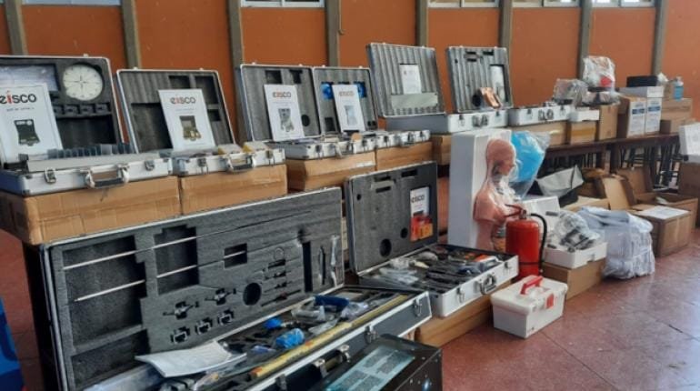 El ministro de Educación, Adrián Quelca, entregó ayer equipamiento para unidades educativas del nivel secundario, consistentes en laboratorios para física, química,