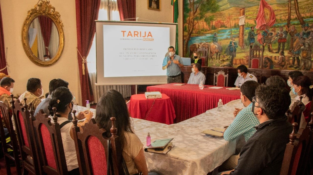 (Agencias municipales)El Gobierno Municipal de Tarija, en coordinación con autoridades de salud, realizó una reunión del Comité de Operaciones de Emergencia Municipal (COEM) donde se presentó la reformulación del Plan de Contingencia Municipal del Covid-19, que ahora estará enfocado en 4 estrategias: salud, reactivación económica, seguridad alimentaria y protocolos de bioseguridad; esto para poder adelantarse en acciones claras ante un posible rebrote del virus en nuestra ciudad.Este nuevo Plan de Contingencia fue trabajado en las últimas semanas y presentado este lunes 23 de noviembre a actores de salud e instituciones vecinales para su aprobación, por lo que entrará en funcionamiento desde la fecha.“Hoy se ha reunido el COE Municipal, hemos presentado el Plan de Contingencia con 4 estrategias que tienen que ver con la salud y la sanidad, con la reactivación económica, con la seguridad alimentaria y la provisión de alimentos a grupos vulnerables y con las acciones y protocolos de bioseguridad para la reactivación de las diferentes actividades”, informó el alcalde de Tarija, Alfonso Pica Lema.Según el alcalde, este nuevo plan permitirá trabajar de manera organizada y planificada para poder utilizar los recursos económicos en varios sectores como la producción, la reactivación económica, la prevención, la salud y todos los componentes que están dentro del plan de prevención.Po otro lado, Pica Lema recordó que el próximo 30 de noviembre, en el marco del Decreto Nacional que está vigente, finaliza la fase de post confinamiento, por lo que en el Municipio se encuentra a la espera de las nuevas determinaciones que serán anunciadas por el Gobierno Nacional y que entrarán en rigor a partir del primero de diciembre.“La emergencia va a seguir, nosotros vamos a mantener la declaración de emergencia sanitaria para poder tomar acciones en el marco de las competencias y atribuciones que tenemos en el nivel municipal, talvez las medidas de restricción deban ser adecuadas al nuevo momento, pero esto será en coordinación con las autoridades en salud , que son las autoridades competentes, y esto se verá en base a la nueva determinación que saldrá del Gobierno Nacional”, explicó. Navegación de entradasYacuiba: Felcv atendió 29 casos, de ellos 20 por violencia física Sustracción de camión de la Aduana se apertura como robo agravado y asociación delictuosa