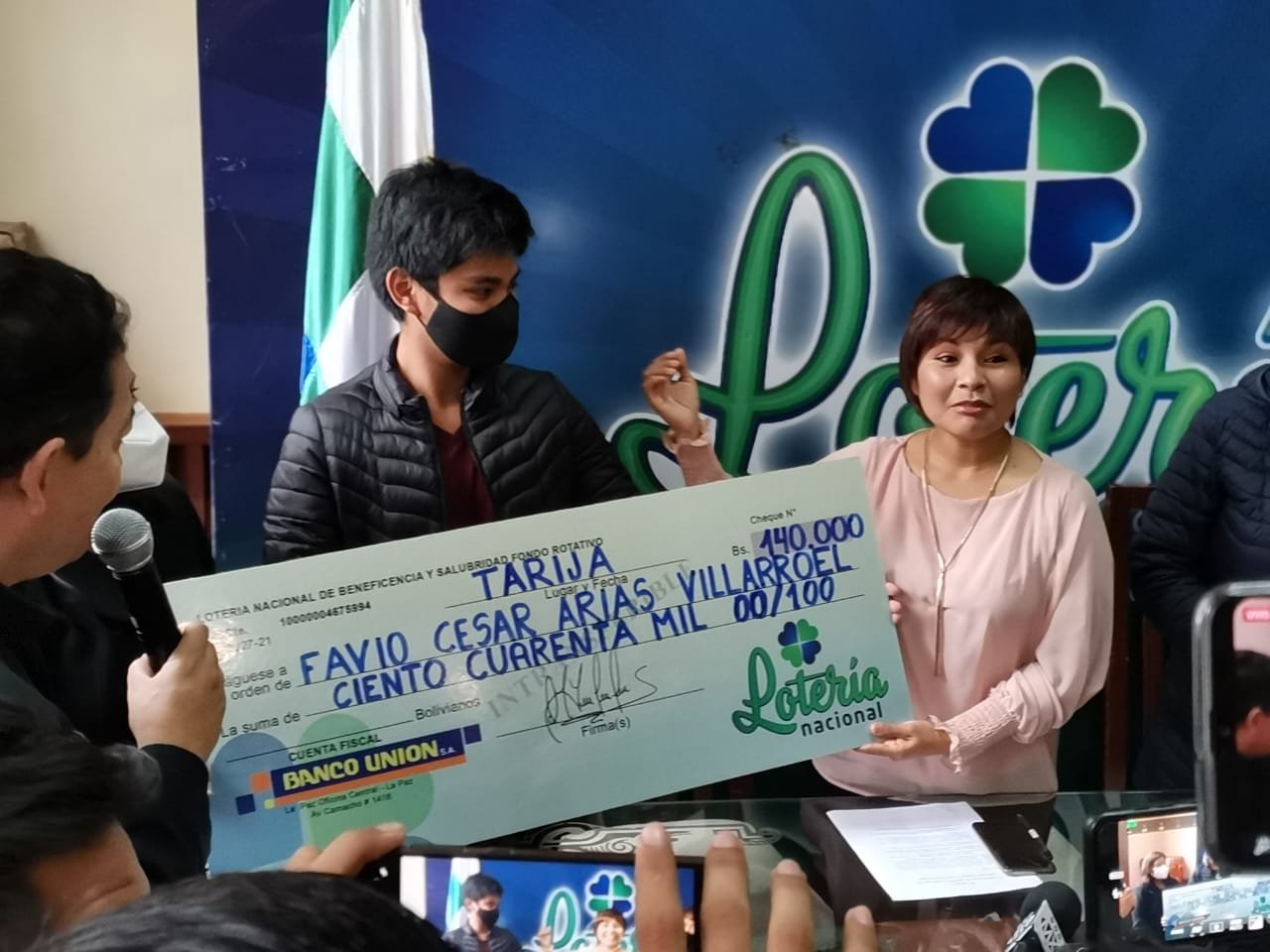 (Roberto A. Barriga/EL andaluz)Favio Cesar Arias, cuando tenía 17 años decidió adquirir un billete de lotería por el valor de 20 bolivianos, el 25 de octubre se realizó el sorteo, en esa fecha cumplía años, es decir que el día que se habilitó para ser un ciudadano mayor de edad y gozar de todos los derechos y obligaciones como boliviano, se enteró que ganó 140 mil bolivianos, (20 mil dólares).Joven Delgado, seguro y con buena dicción, se mostró ante cámaras como un verdadero ganador, expresó su agradecimiento y el premio no le quitó la amabilidad, se mostró seguro ante el público al recibir el primer premio otorgado el 2020 por parte de la LONABOL.“Pa mi sorpresa me vengo a ganar el premio mayor acá en Tarija, estoy agradecido con la lotería y por su transparencia” declaró ante cámaras Arias. El joven ganador apuntó que lleva más de un año participando en el juego de azar.María Nélida Acuña, presidenta de la Lotería Nacional de Beneficencia y Salubridad (LONABOL), mostró su algarabía ante el joven ganador y anunció que se tiene otro premio con salida forzosa para fin de este mes, el premio será de medio millo de bolivianos (500.000 Bs), y el segundo de cuarenta mil bolivianos (40.000 Bs), al igual que otros premios menores.“Este billete no solamente es una esperanza para quien lo compra y quiere ganar un premio, sino va a beneficencia y salubridad” expresó en la entrega del premio.Acuña anunció que la Lotería Nacional esta en proceso de modernización, y pronto se podrá tener una aplicación lúdica móvil donde contará con juegos como la Raspadita y la misma Lotería, que hace años no se jugaba y ahora podrá acceder a través de cualquier celular, los premios no sólo serán en efectivo, también se otorgarán electrodomésticos.Nueva presidenta de lotería fue posesionada a finales de noviembre El Ministerio de Salud posesionó el 27 de noviembre a María Acuña Segovia como directora general de la Lotería Nacional de Beneficencia y Salubridad de Bolivia, con el compromiso de servir a la población. «Tiene un compromiso de poder servir a la población, la Lotería representa un motor principal en todo aquello que representa la solidaridad en beneficio de la población», dijo la viceministra de Promoción y Vigilancia Epidemiológica, María Renee Castro, durante el acto oficial, que realizó en el auditorio del Ministerio de Salud de la ciudad de La Paz.Castro explicó que la Lotería tiene una trayectoria de 92 años, por lo que le pidió a la nueva directora trabajar con mucha responsabilidad sin olvidar el compromiso social que se tiene con el pueblo boliviano.Acuña es oriunda de Tarija y de profesión Administradora de Empresas, también tiene una experiencia laboral de más de 15 años en la administración pública y privada.Por su parte, la nueva autoridad agradeció la confianza depositada en su persona y se comprometió a trabajar con esfuerzo, eficiencia, transparencia y llegar a los sectores más vulnerables de la sociedad.Asimismo, adelantó que la Lotería Nacional incursionará en la era digital y generará fuentes de empleo, además de que los juegos llegarán hasta el último rincón del país para que todos tengan la oportunidad de ganar premios y paliar de alguna manera la crisis económica que atraviesan los bolivianos por el COVID-19.“Vamos a poner todos los esfuerzos profesionales para que la Lotería se renueve con una nueva imagen y sea una institución que lleve la esperanza y fe a todos los hogares bolivianos», agregó. Navegación de entradasBermejo eliminará incubación del dengue a través de una minga Tarija acumula 16.745 casos positivos de covid, en la jornada reporto 14 contagios