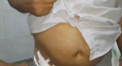 La víctima apareció herido de gravedad en el patio de un domicilio , siendo auxiliado por su hermana, quien junto