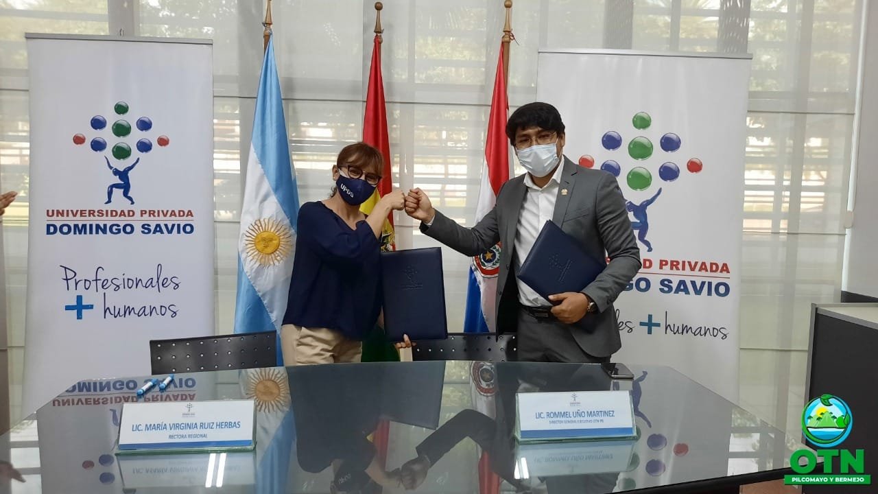 El día de hoy, en instalaciones de la Casa de Estudios de la Universidad Privada Domingo Savio (UPDS) se concretó la firma del Convenio de Cooperación y Coordinación Interinstitucional entre la Oficina Técnica Nacional de los Ríos Pilcomayo y Bermejo (OTN-PB) y la UPDS, en la que participaron autoridades de ambas instituciones, el Director General Ejecutivo de la OTN – PB, Lic. Rommel Uño Martínez y la Rectora Regional de la UPDS, Lic. María Virginia Ruíz Herbas.El objeto de este Convenio es el de establecer lazos de cooperación y coordinación interinstitucional, para la realización en común de actividades de capacitación y de investigación que redunden en beneficio de ambas partes:Momento de la firma del convenioa. Realización y aplicación conjunta de estudios y proyectos de investigación en temas de interés común, donde se desarrollen concursos de proyectos para sobre las cuencas Pilcomayo y Bermejo a través de la presentación de propuestas de Proyectos.b. Desarrollo de programas de prácticas profesionales y modalidades de graduación en distintas áreas.c. Desarrollo de cursos, talleres y seminarios, dirigidos a actividades educativas de planificación, desarrollo y difusión de las acciones y aplicaciones de técnicas comunicacionales y medio ambientales destinadas a la implementación de programas, proyectos, eventos y actividades enmarcadas en la cultura ambiental y cultura del agua.d. Establecer áreas de trabajo, mecanismos de relacionamiento y coordinación de acciones conjuntas en el plano técnico, académico e investigativo de beneficio mutuo para el fortalecimiento interinstitucional.e. Establecer un espacio amplio de cooperación mutua que facilite a las partes el aprovechamiento de oportunidades comunes a través del intercambio de conocimientos, experiencias, información, formación y asistencia técnica recíproca, y otras actividades que puedan determinarse por acuerdo mutuo o a solicitud de las partes.f. Cualquier otra actividad que, en el ámbito de este Acuerdo, redunde en beneficio mutuoLa UPDS y la OTN – PB coordinarán mediante la elaboración de un calendario de actividades conjuntas, para la ejecución del presente convenio. Navegación de entradasReportaje: El asesinato de Ingrid “sol” Oliveira y el acoso en videojuegos. Quecaña contra Montes: “Él es enemigo del Chaco, se opuso al 45% y la autonomía”