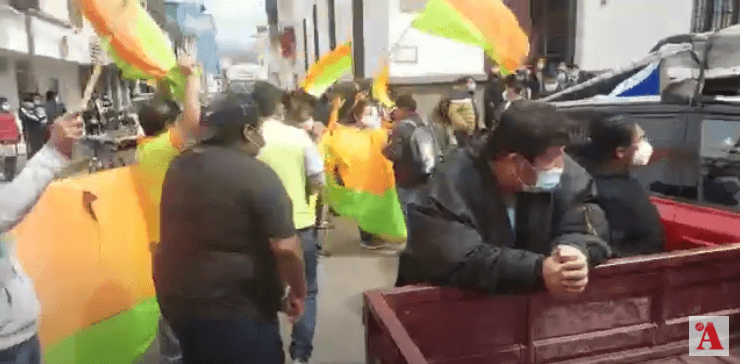Militantes de UNIDOS con banderas bloquearon el acceso a la Plaza Luis de Fuentes y Vargas, eso impidió a militantes