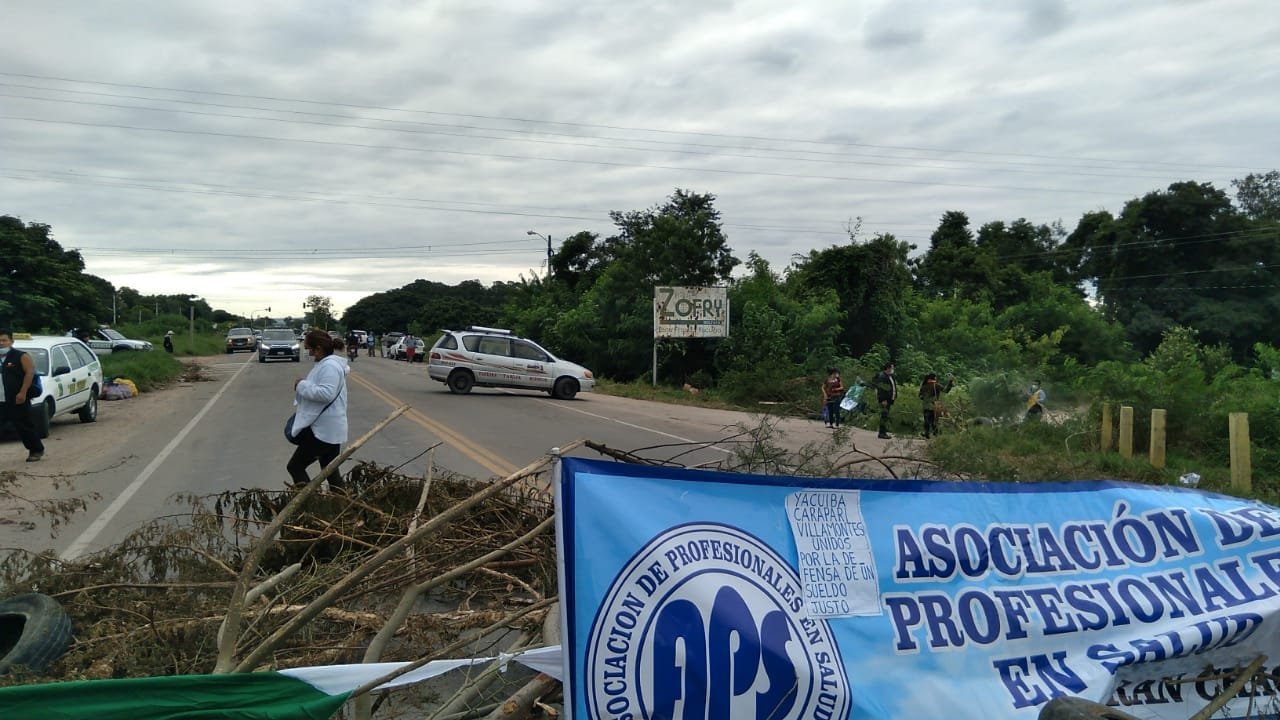 Los salubristas del Programa Fortalecimiento del Gran Chaco bloquearon ayer la ruta 9 en demanda del pago de sus salarios de enero, febrero y marzo. El sector se declaró en paro indefinido hace casi dos semanas a la espera de soluciones.