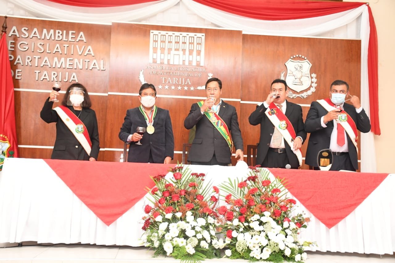 REDACCIÓN CENTRALEn la pasada jornada la Asamblea Legislativa Departamental de Tarija (ALDT) llevo adelante una sesión de honor para rendir homenaje a Tarija al recordarse 204 años de la batalla de La Tablada.En la sesión de honor participaron autoridades nacionales, entre ellos el presidente Luis Arce Catacora, el presidente del senado, Andronico Rodríguez, el alcalde electo de Tarija, Johnny Torres, además de legisladores nacionales.Arce participará de los principales actos preparados para éste 15 de abril.El primer mandatario anunció inversiones importantes para el departamento de Tarija y se comprometió a realizar inversiones significativas.Además de la entrega floral, el Te Deum y la sesión de honor del Concejo Municipal, se anuncia que Arce entregará obras en Padcaya y en el Chaco.ProyectosEl presidente Arce informó que se invertirán Bs. 1.512 millones para la reactivación económica del departamento de Tarija. Arce informó que se realizará la inversión de $us 21 millones para la construcción de la Doble Vía Yacuiba- Campo Pajoso, que contará con una longitud de 3,6 kilómetros e incluirá tres puentes, además permitirá beneficiar a 78.198 habitantes.Además, se prevé implementar la Unidad de Remoción de Mercurio de la Planta Separadora de Líquidos de Yacuiba, que es capaz de reducir los contenidos de mercurio desde 1,17 hasta 0,01 microgramos por metro cúbico.Otro de los proyectos que se reactivará es la Unidad Acondicionadora de Semillas de Trigo que tendrá una inversión de más de Bs 9 millones. También se impulsará el proyecto eólico La Ventolera mediante fuentes alternativas con alrededor de 24 megavatios adicionados al Sistema Interconectado Nacional. Navegación de entradasTransporte busca reunirse con el presidente de UNIVida por el SOAT proponen con un proyecto de Ley descuento del 50% en pensiones de colegios privados