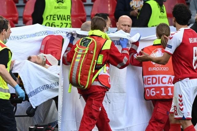 Las imágenes fueron durísimas. Los médicos atendieron de urgencia al futbolista danés, al que tuvieron que hacer incluso la reanimación sobre el propio césped. Los compañeros del futbolista y también los finlandeses, rivales suyos en el partido, enseguida se echaron las manos a la cara y empezaron incluso a rezar.