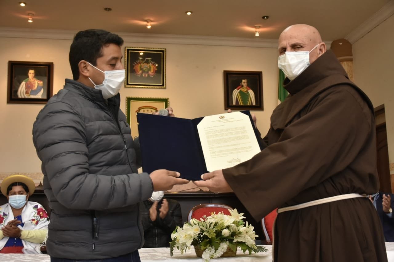 El Andaluz/ YacuibaLa Cámara de Senadores hizo llegar ayer un reconocimiento de homenaje al San Pedro Apóstol. El acto se desarrolló en el salón consistorial del Concejo Municipal de Yacuiba, donde el senador Miguel Rejas resaltó la unidad de los yacuibeños en torno a la fe y devoción al Santo Patrono del municipio.“Desde la Cámara de Senadores, por dispensación de trámites, hicimos este reconocimiento para que los yacuibeños podamos ser reconocidos a nivel nacional y para que con mayor fortaleza año tras año podamos seguir recordando este acto de fe y devoción, y no solo en Yacuiba sino en el país”, resaltó Rejas en el acto.El padre Cosme Polizio, párroco de la iglesia de San Pedro, recibió el Reconocimiento Camaral en homenaje al Santo Patrono de Yacuiba y recordó la importancia de mantener la fe y la devoción en los difíciles momentos que atraviesa el municipio por la pandemia.El acto se desarrolló en el salón consistorial del Concejo Municipal con la participación del alcalde de Yacuiba, Carlos Brú; el ejecutivo regional, José Luis Ábrego, y otros representantes municipales y regionales.Brú recordó la historia de San Pedro Apóstol y la Yacuiba de antaño, además de destacar el trabajo del senador Rejas y el diputado Eloy Maraz por las gestiones que realizan en la Asamblea Legislativa Plurinacional en beneficio de la población chaqueña. Navegación de entradasLlegaran 6 millones de vacunas Sinopharm, se amplía vacunación a mayores de 18 años Ábrego: “las rutas estaban abandonadas y en situación demasiado crítica”