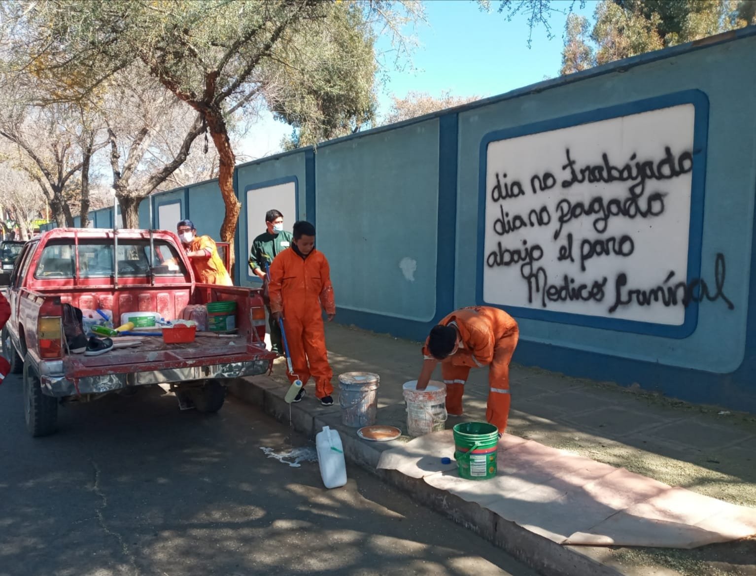 Flores informó que los establecimientos a los que se pintó fueron el colegio Belgrano, Avelina Raña, Lindaura Anzoátegui de Campero, Eulogio Ruiz, entre otros.
