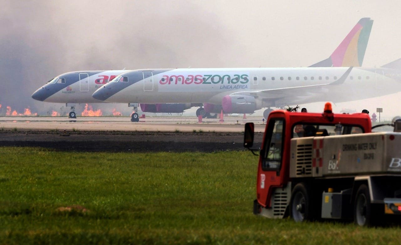 Tras el incendio registrado el domingo en inmediaciones del aeropuerto de Viru Viru, en la ciudad de Santa Cruz, y que no puede ser sofocado hasta el momento, el ministro de Obras Públicas, Servicios y Vivienda, Edgar Montaño, anunció este lunes una demanda ante la Fiscalía para que se indague las causas del siniestro que causó la suspensión de más de una veintena de vuelos en esa región del oriente del país.«Supongo que hubo (una mano negra) porque ayer no había motivo alguno de fenómenos naturales (…), el día de hoy estamos presentando la denuncia ante la fiscalía para que se investigue y se dé con los autores del hecho», informó en un breve contacto con los periodistas.Agregó que al momento 120 bomberos trabajan para sofocar el fuego. «Quiero agradecer a todos los bomberos que llegaron, de Cotoca, de Santa Cruz, nosotros también contamos con bomberos, por eso es que no se agravó este tema pero obviamente nos interesa toda la naturaleza, la fauna que existe alrededor del aeropuerto de Viru Viru, además de las instalaciones que están cerca a las carreteras», agregó.Se conoce que el incendio se inició cerca al mediodía de este domingo, aproximadamente a ocho kilómetros del aeropuerto, por inmediaciones de la Avenida G77, y se expandió rápidamente debido a los fuertes vientos que se registraban.Los vecinos del sector reaccionaron alarmados e intentaron controlar las llamas sacando baldes de agua desde sus domicilios, mientras más de 120 bomberos de distintas instituciones también trataban de sofocar el fuego durante toda la tarde y parte de la noche. Navegación de entradasTras 17 horas, el fuego persiste en dos zonas cercanas a Viru Viru Joven muere presuntamente por una caída jugando futbol; Policía investiga