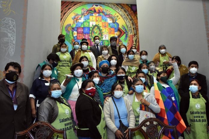 El presidente Luis Arce entregó ayer el Decreto Supremo reglamentario de la Ley 2450 de Regulación del Trabajo Asalariado del