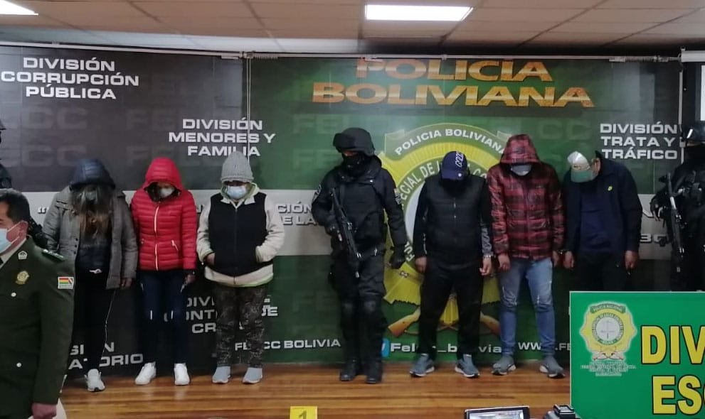 La Policía logró la aprehensión de cinco personas, tres hombres y dos mujeres, integrantes de una banda de atracadores, que realizó un asalto filmado en por el cruce de villas de La Paz. El director de la fuerza anticrimen, coronel Alberto Aguilar, indicó que el caso se registró el 2 de noviembre, cuando vecinos detectaron un vehículo color blanco sospechoso.Según el reporte, la banda atracó violentamente y robó el celular de un joven, el cual terminó con 25 días de impedimento. También, los antisociales golpearon al dueño de una licorería, que había intentado ayudar a la víctima del asalto, y a una niña, llevándose también otro teléfono.En la intervención policial, se arrestó a una mujer que habría participado de los hechos delictivos, quien –sin embargo- negaba haber estado involucrada.Sin embargo, la Policía logró que dicha mujer se contacte con la madre de su pareja, el cual también había participado en los hechos de atraco.La madre del sujeto intentó sobornar con Bs500 al oficial a cargo, por lo cual fue aprehendida.El resto de la banda estaba circulando alrededor de la Policía en el mismo vehículo y sus integrantes fueron atrapados, al momento en que la acusada de soborno intentó subir al coche, según el coronel Aguilar.El jefe anticrimen señaló que los involucrados tienen un frondoso portuario. Precisó que el cabecilla de la banda tiene antecedentes por homicidio y tentativa de homicidio, pero además su padre tiene antecedes por robo.El mismo cabecilla, identificado como E. J. C., estaba en la cárcel de San Pedro por una condena de 18 años de cárcel, pero había salido del penal bajo el argumento de que tenía una enfermedad sin cura, motivo por el cual estaba beneficiado con detención domiciliaria.Señaló que el sujeto cabecilla no cumplía con su detención domiciliaria, sino se dedicaba a atracar. Navegación de entradasBolivia: cinco ciudadanos chinos detenidos por tráfico de partes de jaguar Mujer es asesinada por su pareja tras recibir una puñalada en el pecho