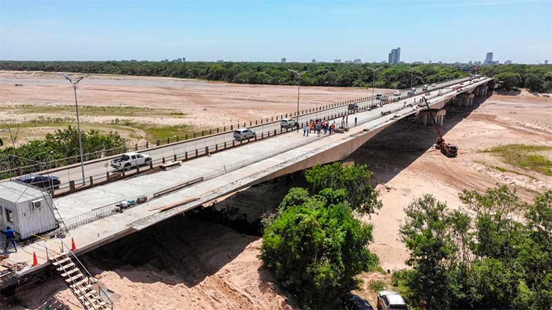 Acorde al vicegobernador de Santa Cruz, Mario Aguilera, el puente esta al 95 por ciento de su construcción, y los accesos los terminaran probablemente en mayo del 2022, es decir los accesos les tomaran cuatro meses.
