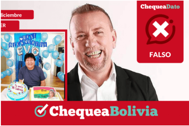 Segun Chequea Bolivia el político, Virginio Lema, compartió un contenido falso a través de su cuenta de Twitter. Se trata de una fotografía del expresidente Evo Morales con un mensaje que señala: “El amor mueve montañas #evoespueblo”. En la fotografía se observa al expresidente dándole la bienvenida a Gabriela Zapata, con quien mantuvo una relación sentimental.