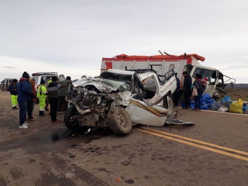Cuatro personas fallecieron este martes al chocar frontalmente una camioneta y un camión en la carretera Camargo-Potosí, según un reporte de la Policía. El