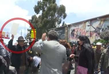 En las imágenes que se difundió en la red Unitel se observa que el  reportero, Vladimir Rojas, es amenazado, chicoteado. En su intento de calmar a la turba fue víctima de un golpe en la cabeza que sangró.
