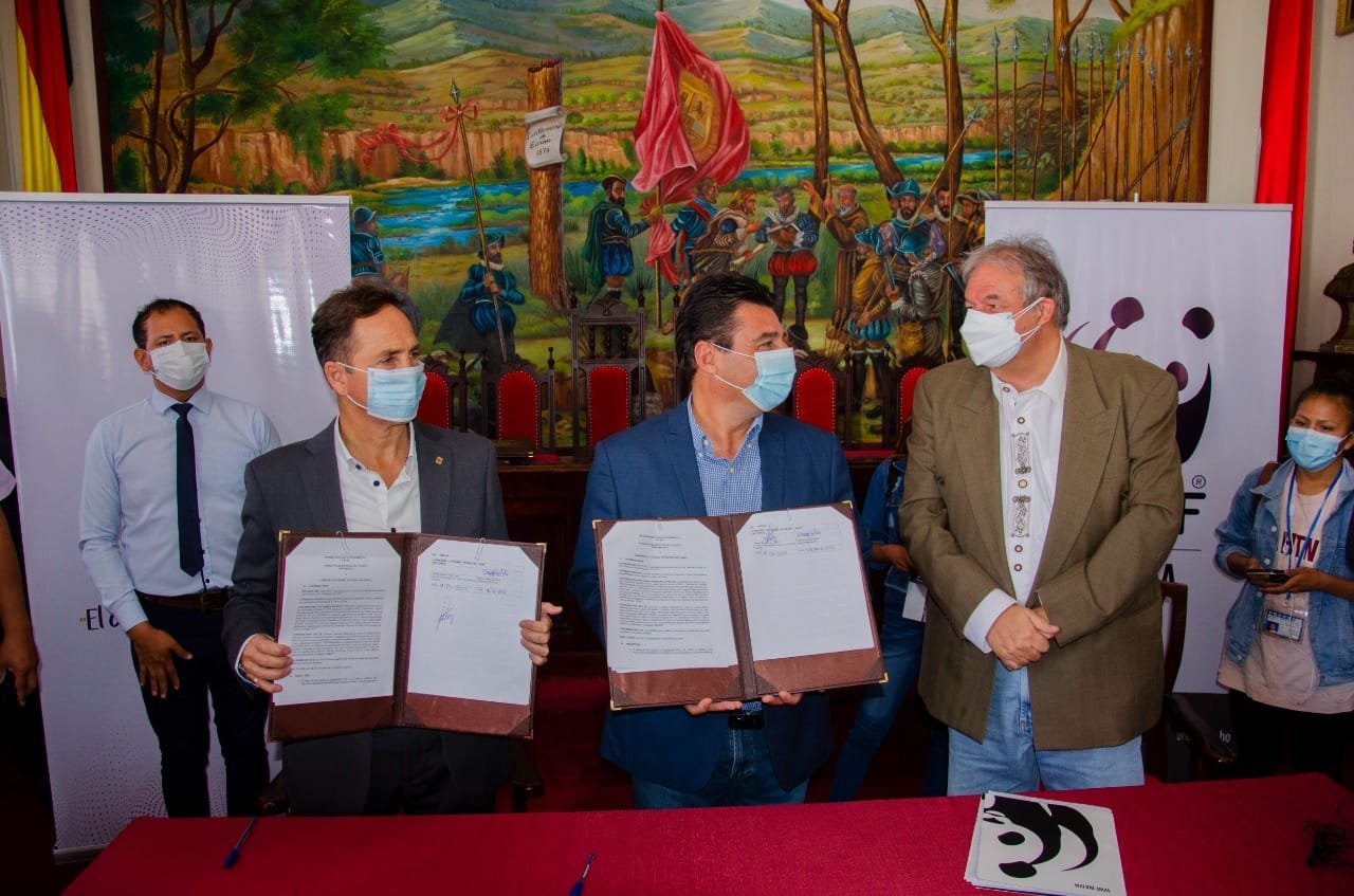 AgenciasCon la finalidad de establecer una relación de colaboración interinstitucional orientada a fortalecer la gestión ambiental en la provincia Cercado, la Alcaldía de Tarija y el Fondo Mundial para la Naturaleza, (WWF), firmaron un memorándum de entendimiento, mediante el cual acordaron el trabajo conjunto para la elaboración y ejecución de proyectos y programas que contribuyan a la construcción de una cultura ciudadana en torno a la mitigación de los efectos del cambio climático.En ese sentido el alcalde de Tarija, Johnny Torres Terzo, informó que a partir de la firma de dicho memorándum, se elaborarán una serie de proyectos que ayuden a solucionar problemas como el manejo de la basura y el tratamiento de las aguas residuales.“Convencido que junto a la WWF, dimos un paso hacia otro nivel de trabajo, de entendimiento y cooperación, siento que hoy metimos un gol en favor de Tarija, porque vamos a trabajar en solucionar el problema de la basura, para que mañana no se aun problema sino que sea una oportunidad, este documento que firmamos es la formalización para trabajar en la solución a los principales problemas de la ciudad de Tarija”, dijo Torres Terzo.Por su parte el representante de WWF en Bolivia, Samuel Sangüeza Pardo, mencionó que el WWF, trabaja junto al municipio de Cercado hace más de tres años, llevando adelante el Proyecto, “Soluciones Urbanas con Acción Ciudadana”, que tiene el objetivo de generar conciencia sobre los problemas medio ambientales con el fin de establecer cambios de actitud y a lograr un compromiso ético de diversos actores en favor de la conservación de la biodiversidad y mantenimiento de la calidad del ambiente.“Esta alianza nos permite dar voz a todos los sectores y que sean actores clave para lograr un mundo en el que las personas vivan en armonía con la naturaleza, es por eso que a través de este memorándum nosotros vamos a seguir colaborando con este municipio, para apoyar la gestión ambiental, agradecemos la predisposición del alcalde, quien nos presentó proyectos muy interesantes, que vamos a estar evaluando para trabajarlos junto a la población”, declaró Sangüesa Pardo.El acuerdo también busca motivar a que el Gobierno Municipal de Tarija, Organizaciones Sociales de Base y sectores vulnerables de la población, propongan e implementen soluciones urbanas orientadas a la resiliencia al cambio climático y la problemática ambiental, para reducir la pobreza urbana. Por otro lado, se espera identificar políticas públicas que permitan construir un horizonte hacia la consolidación de una ciudad sostenible y que contribuya a la agenda municipal de desarrollo urbano.Finalmente tras la firma de dicho convenio ambas autoridades se trasladaron hasta el Centro de Adecuación Ambiental, (CEA), donde acordaron dar continuidad a las acciones realizadas en dicho lugar logrando que niños, jóvenes, sectores y actores sociales desarrollen una cultura de resiliencia, y logren mayor sensibilización a través de las estrategias de educación ambiental, fortaleciendo su compromiso por el cuidado y respeto a la naturaleza. Navegación de entradasEl TED Tarija realizará el Encuentro Departamental contra el Acoso y Violencia Política Bloquean proyecto del tramo Choere-Acheral por sueldos impagos