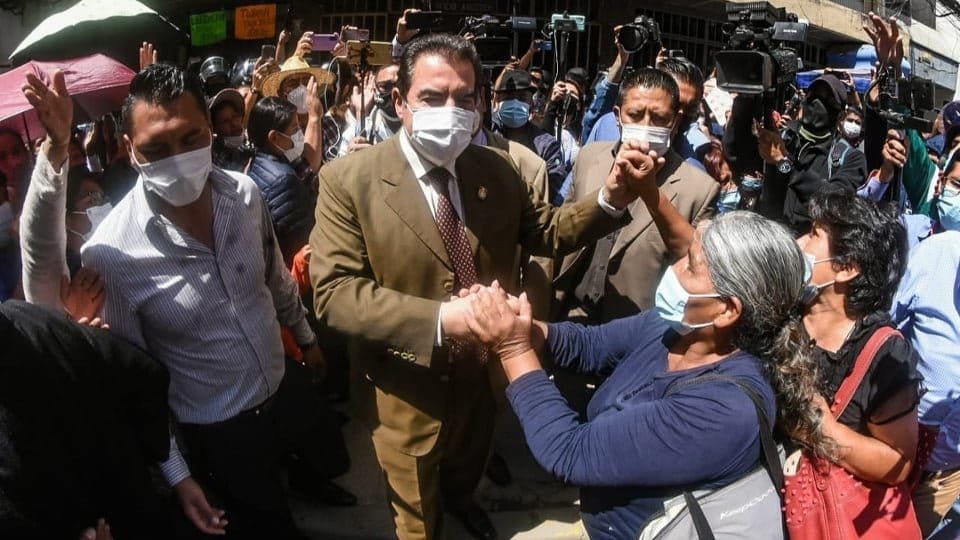 Tras presentarse a declarar en la Fiscalía Anticorrupción por presuntos contratos irregulares, Manfred Reyes Villa salió totalmente «abrigado» por una