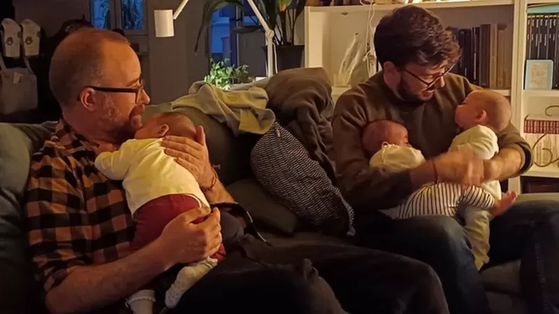 “Nunca imaginamos ser padres de trillizas”: la singular historia de una pareja gay española que adoptó a tres hermanas recién nacidas
