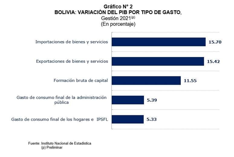 Bolivia superó sus expectativas de crecimiento para 2021 (5,1%). El Producto Interno Bruto (PIB) del país registró el año pasado una