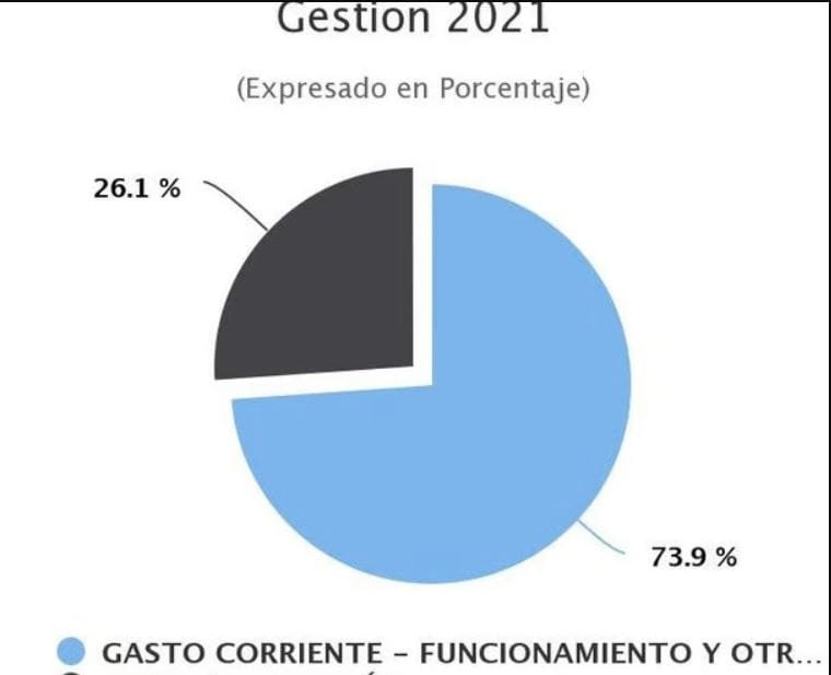En el caso del municipio de Villa Montes, su presupuesto 2021 tenía un techo de 119,5 millones de bolivianos. El 74% de estos recursos está destinado a «gasto corriente». El restante esta destinado a «proyectos de inversión» (26%).