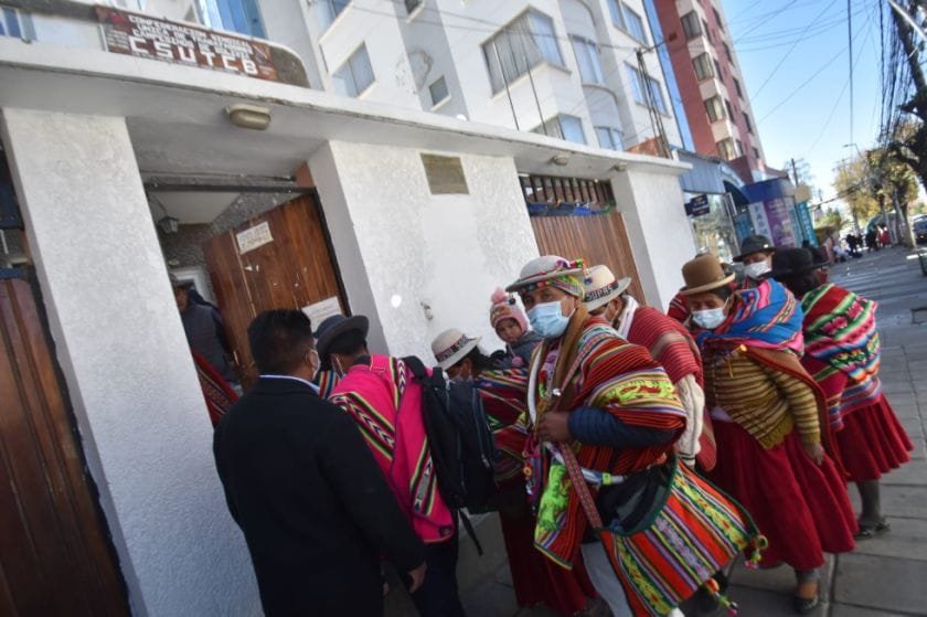 Los dirigentes del denominado Pacto de Unidad conformado por organizaciones afines al Movimiento Al Socialismo (MAS) esperan a los mandatarios Luis