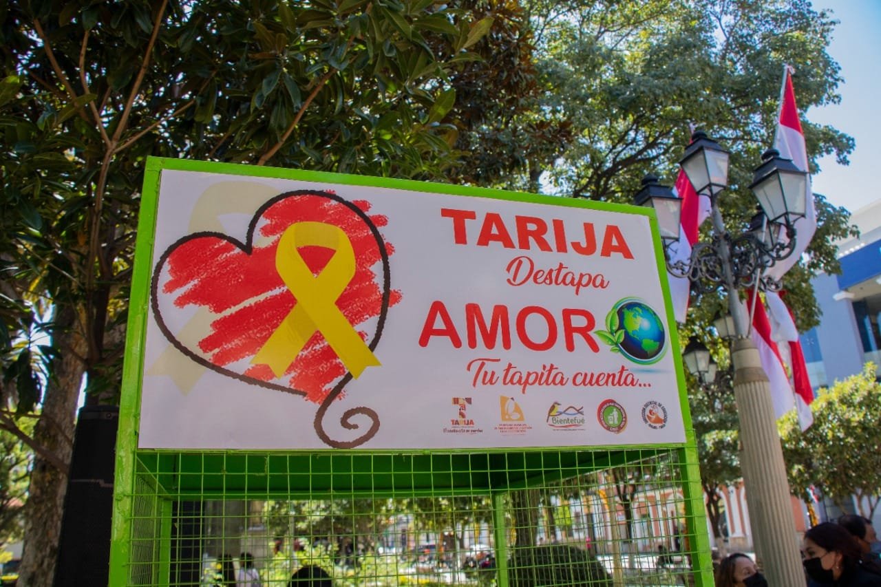 En coordinación con la fundación Luz de Esperanza, Dirección distrital de educación, estudiantes de las promociones de 14 unidades educativas y el Centro de Educación Ambiental, (CEA), la Alcaldía de Tarija a través de la Entidad de Aseo Municipal Tarija, (EMAT),  lanzó y presentó  la campaña solidaria denominada “Tarija destapa amor”, la cual consiste en la recolección de tapa roscas plásticas, para su posterior venta y los recursos económicos que se obtengan serán transferidos en beneficio de los niños con cáncer.