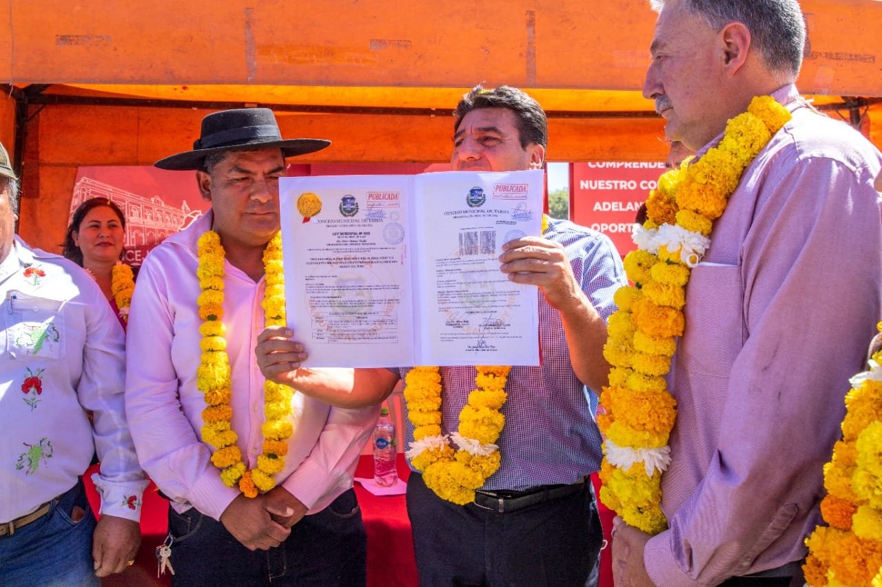 AgenciasEn instalaciones del mercado Abasto del Sur, la jornada del miércoles 27 del presente mes el alcalde de Tarija, Johnny Torres Terzo, junto al presidente del concejo municipal, Cesar Mentasti, entregaron a los dirigentes vecinales y del mencionado Mercado la ley municipal 299 aprobada y Promulgada, que declara propiedad municipal de áreas verdes y/o equipamiento en la zona de Morros Blancos – Abasto del Sur.“Se hicieron una serie de trabajos desde el Municipio con el movimiento de tierra, asfaltado del ingreso y la avenida principal del mercado Abasto del Sur, entonces ¿cuál es el desafío a vencer?, desde el municipio darles todas las comodidades necesarias, que cuando una persona venga el este mercado tenga donde parquear, tenga donde caminar, eso es lo que busca el comprador, es por eso que debemos seguir trabajando para mejorar”, dijo Torres Terzo.El concejal, Fernando Castellanos, proyectista de la ley 299, indicó que el Abasto del Sur pasa a ser propiedad del Gobierno Autónomo Municipal de Tarija, argumentando que con dicha normativa los comerciantes y vecinos de la zona tendrán acceso a mejores servicios, que permitirá una mejor atención a la población y se potenciará la generación de movimiento económico.En complemento el presidente del mercado Abasto de Sur, Leornado Caliba, a tiempo de recibir la mencionada ley, aseveró que con la normativa 299 se podrán ejecutar una serie de mejoras dentro y en zonas aledañas al mercado Abasto del Sur.“Es lindo tener un Alcalde churo y trabajador, porque en meses lograron promulgar una ley que veníamos buscando desde hace 6 años, porque lo que queremos es que nuestro mercado progrese y así tengamos mejores días para nuestras familias y para todas las familias tarijeñas, nosotros estamos felices hoy pero este trabajo termina aquí vamos a seguir trabajando para tener mejores días”, declaró Caliba. Navegación de entradas¿Dónde están las autoridades?: Tarija se indigna por feminicidio de una niña de 14 años Torres entrega mobiliario en beneficio de 2 mil estudiantes de 4 unidades educativas de Tarija