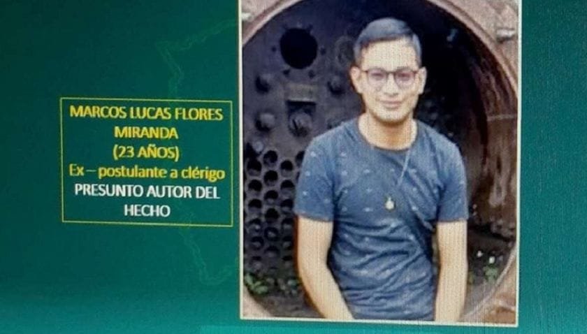 El exaspirante a religioso Marco Lucas Flores (23), identificado como el presunto asesino del sacerdote Wilberth Daza Rodas, se quitó