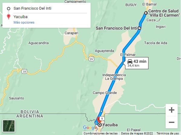 Haciendo un cálculo, les toma aproximadamente una hora llegar a Yacuiba, si tienen transporte, para acceder a la atención de especialistas en horarios de urgencia.