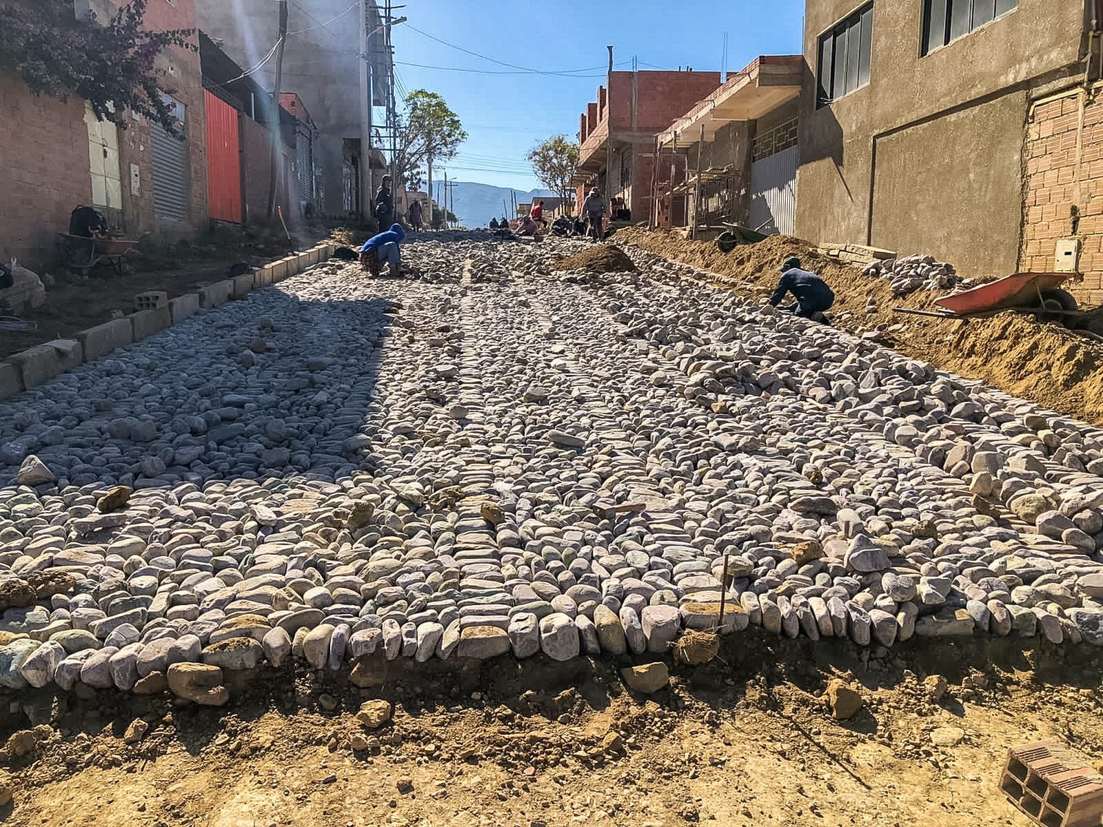 Desde el mes de abril hasta la fecha, la Alcaldía de Tarija, a través de la Secretaría de Infraestructura y Servicios Públicos, ha realizado el empedrado de 27.817,11 metros cuadrados en calles de 20 barrios de la ciudad. El programa demanda una inversión de 1,707.295, 42 millones de bolivianos. Además, representa 400 fuentes laborales en beneficio de las familias de las zonas donde se llevan adelante los trabajos de empedrado.Hasta fin de años se espera ejecutar un paquete de 12 barrios más y así mejorar la cobertura de calles empedradas, para dar lugar a los trabajos de asfaltado.El secretario de Infraestructura y Servicios Públicos, Edwin Gareca, informó que actualmente se concluyó con los trabajos de empedrado en 20 barrios, hasta diciembre se culminará con las tareas en 12 zonas de la ciudad y así poder cumplir con lo que se tenía programado.“A través del Municipio de Tarija, estamos encarando el mejoramiento de las vías y fruto de ello es que tenemos el tema de los empedrados de las calles que han estado descuidadas desde hace tiempo y así podrán mejorar la calidad de vida y para la luego ver de asfaltar”, dijo.Asimismo, explicó que se hizo una inversión considerable el paquete que se ha concluido tomando en cuenta que están en época de crisis, sin embargo, el compromiso de los barrios es el mejoramiento de las vías, se seguirá trabajando hasta fin de año, con 12 barrios más para finalizar la presente gestión.“Estamos encarando todos los proyectos con inversión propia del Municipio, los próximos dos barrios que se intervendrán, son el barrio Nuevo Amanecer, y el barrio Nueva Esperanza y hasta fin de año se podrá concluir con todos los barrios programados y la inversión para toda esta gestión es cerca de los 3 millones de bolivianos”, añadió.Por su parte un vecino del barrio Pedro Antonio Flores, Jaime Ríos, refirió que son varias familias beneficiadas con el empedrado de calles en la zona, además que los mismos vecinos son contratados para realizar las labores de empedrado.“Agradecido con el alcalde Johnny Torres, quien desde un principio nos tomó en cuenta no nos hizo esperar como la anterior gestión de la Alcaldía, ya que se tenía más de 15 años esperando el empedrado de esas calles importantes, pero, gracias a su voluntad de Alcalde, hoy estamos empedrando nuestras calles, está cumpliendo con su compromiso”, aseveró.A través del Plan de Acción Distrital, la Alcaldía realiza trabajos de perfilado, mantenimiento y ripiado de calles, además de mejoras y limpieza de áreas de ornato y alumbrado público en los barrios.Barrios beneficiadosLas calles de los barrios beneficiados con el empedrado son: Aeropuerto, 20 de Enero, La Torre, Lourdes, Los Chapacos II, 27 de Mayo, Monte Sud, San Gerónimo Sud, Simón Bolívar, El Trigal, Pedro Antonio Flores, 4 de Marzo, El Constructor, La Unión, Los Olivos, Miraflores, Morros Blancos, Petrolero, San Bernardo y Torrecillas.DATOEl empedrado en el barrio Pedro Antonio Flores, se realizó en la calle Santa Rosa 470 m2 y en la Avenida Itaú, 791,52. Navegación de entradasLA GOBERNACION PONE EN MARCHA LA PRODUCCIÓN DE CULTIVOS DE ALTO VALOR Alcalde Torres entrega planimetría e inaugura vistosa plaza y parque en Aranjuez Norte