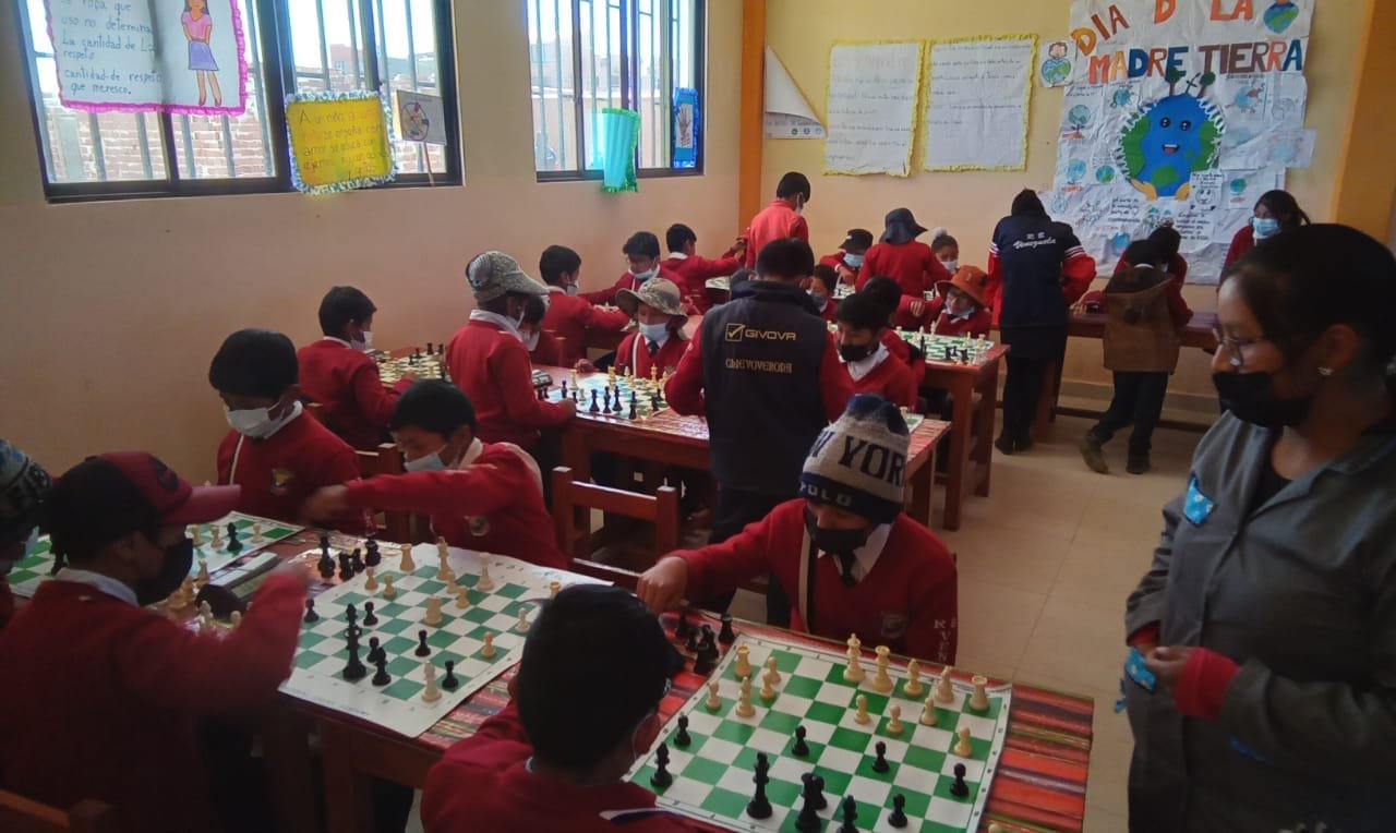YAMIL CHOQUE MERCADO – DALE.-Del 10 al 12 de agosto 110.887 de 6.196 unidades educativas fiscales y particulares de todo el país participaron en la primera ronda del torneo ‘Jaque Mate a la Violencia’Más de 100.00 estudiantes de Primaria y Secundaria participaron en la fase Intercolegial del torneo Nacional de ajedrez “Jaque Mate a la Violencia” organizado por el Ministerio de Educación que el jueves concluyó con la etapa Distrital.Del 10 al 12 de agosto se llevó adelante la primera fase de este certamen que se convocó el 20 de julio por el Día Mundial de Ajedrez y con el objetivo de promover la práctica del ajedrez y la reducción de la violencia, en los estudiantes de educación Primaria Comunitaria y Vocacional y Secundaria Comunicatoria Productiva.Según los datos ofrecidos por el Ministerio de Educación la primera ronda tuvo la presencia de 110.887 de 6.196 unidades educativas fiscales y particulares.Hubo 71.922 estudiantes varones y 38.965 estudiantes mujeres.El desglose por departamentos fue el siguiente: “en Beni participaron 2.895 estudiantes; en Chuquisaca 5.980; en Cochabamba 9.089; en La Paz 48.737; en Oruro 5.641; en Pando 2.913; en Potosí 10.465; en Santa Cruz 19.000; y en Tarija 6.167”, detalla el comunicado de prensa de la cartera gubernamental.“Estamos muy contentos con la gran cantidad de estudiantes que participaron en nuestro torneo de ajedrez. Son casi 111 mil niñas, niños y jóvenes, que fueron parte de esta actividad que no solo promueve la práctica de este deporte ciencia, sino también de la promoción de mensajes contra todo acto de violencia”, manifestó el viceministro de Educación Regular, Bartolomé Puma. Desde el martes hasta el jueves se jugó la fase Distrital con dos clasificados de cada colegio que disputaban un cupo para la ronda Departamental, que a su vez clasificó un jugador a la Nacional en cada una de las categorías de Primaria y Secundaria en damas y varones. La Departamental se realizará del 7 al 9 de septiembre y la Nacional se desarrollará del 19 al 21 del mismo mes en Cochabamba. Navegación de entradasLa ‘armada’ boliviana está lista para ganar el Rally Santa Cruz Nueva caída de Royal Pari; perdió 3-0 ante Bolívar en La Paz