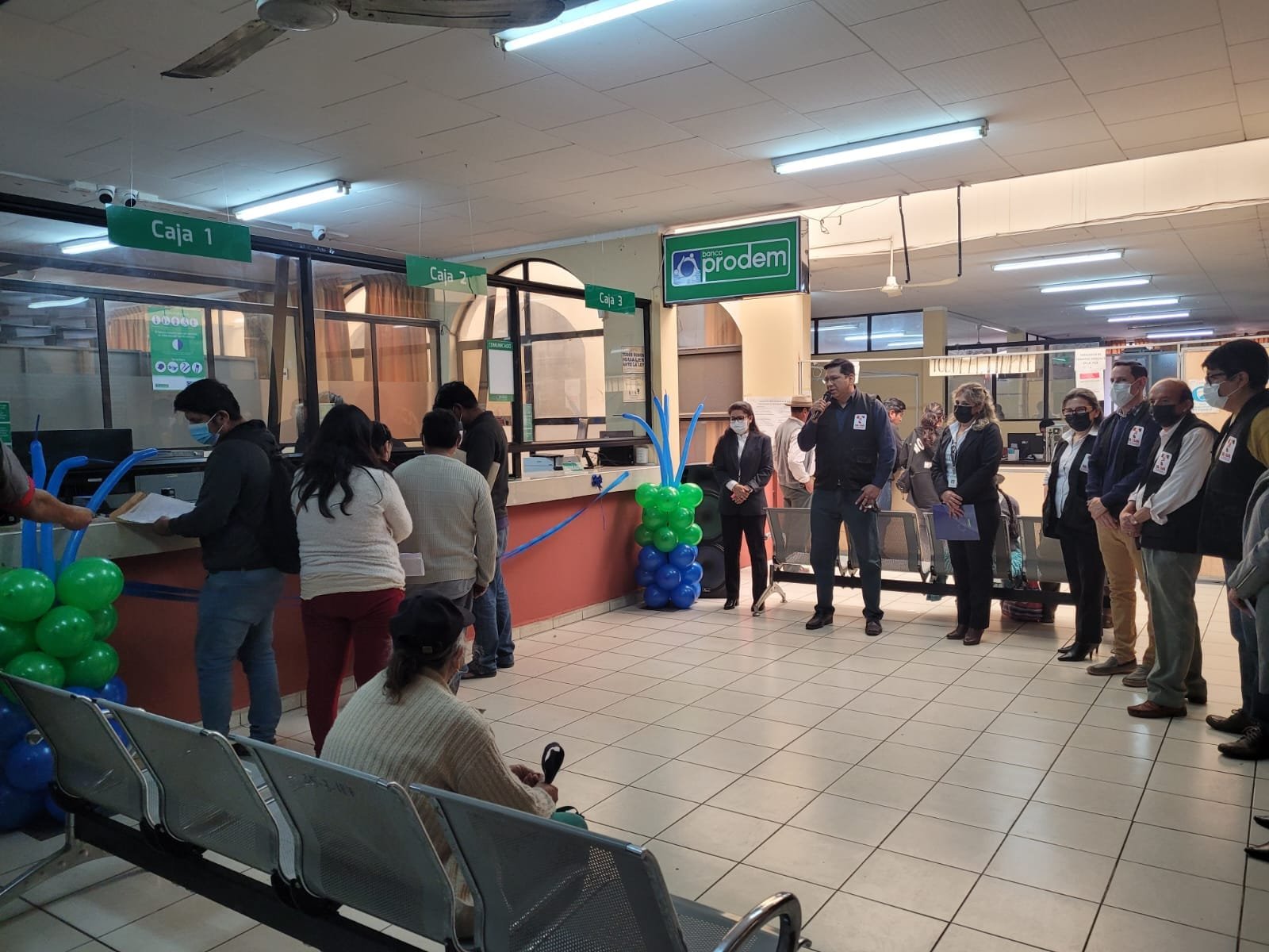 Banco Prodem S.A. realizó la inauguración de una nueva ventanilla de cobranza dependiente de la Agencia Tarija Central. Bajo una inversión de $us. 5.292,76, la misma se encuentra instalada en el 1er piso del Mercado El Molino ubicado en la Calle 15 de abril esquina Calle Ramón Rojas, para brindar el servicio y atención al público que necesite cancelar sus impuestos municipales.