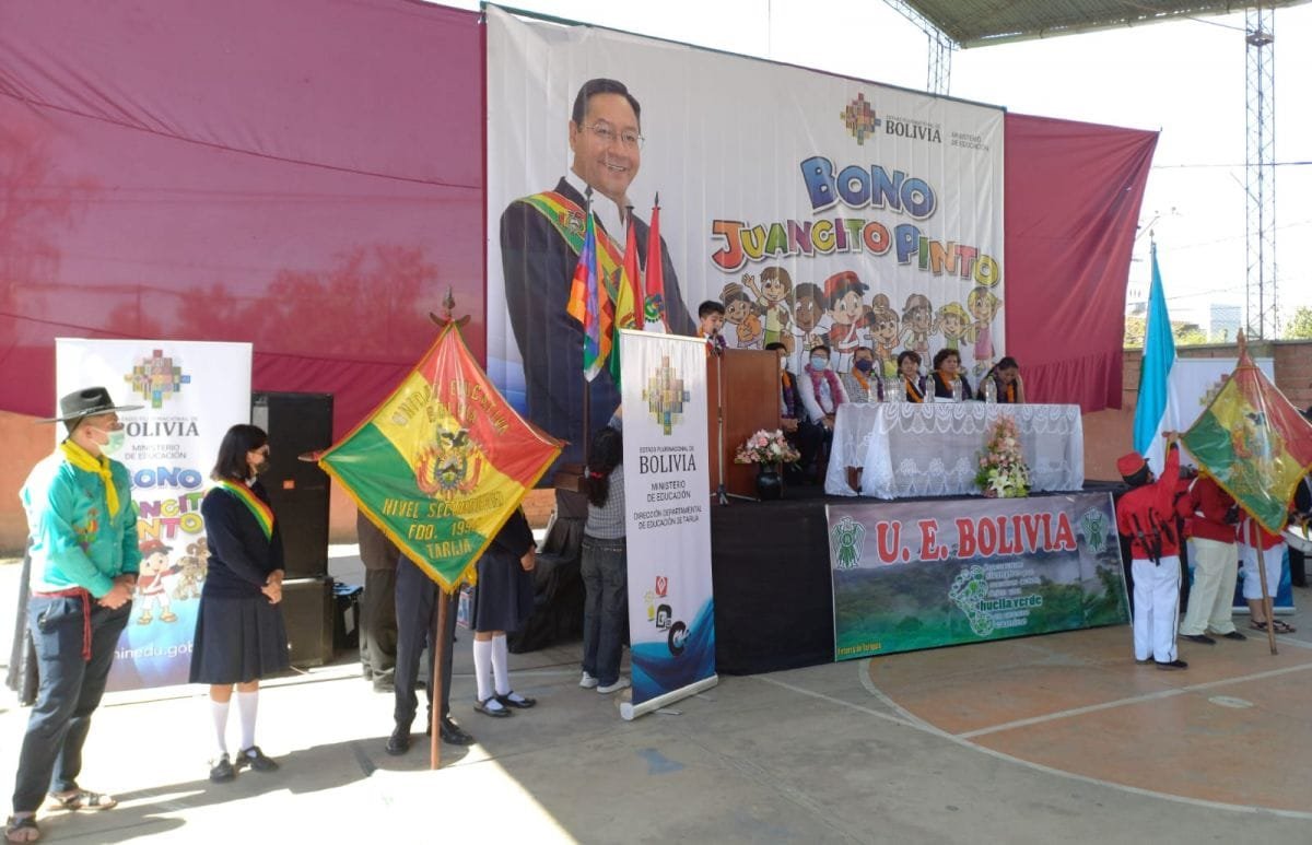 Willam Octavio Flores/ El AndaluzLa Ministra de Trabajo, Verónica Patricia Navia Tejada, Verónica Patricia Navia Tejada, inauguró en la ciudad de Tarija el pago del Bono Juancito Pinto en la unidad educativa Bolivia, dónde destacó que este beneficio se pagará mediante las entidades financieras como el Banco Unión y los padres de familia serán quienes cobren los 200 bolivianos que se entrega a cada uno de los escolares.La autoridad nacional indicó en el acto del pago del Bono Juancito Pinto que serán los menores de edad quienes serán las nuevas autoridades a futuro, por ello que es importante que el Gobierno Central pueda ayudar a los niños y adolescentes para que puedan seguir con sus estudios, ese sentido se entrega estos 200 bolivianos como incentivo a la permanencia escolar.“Este año sean habilitado 15 instituciones financieras para el pago del Bono Juancito Pinto en todo el departamento y que comienza este lunes y dura hasta el tres de diciembre en todo el país”, indicó la autoridad nacional, a tiempo de pedir a los padres de familia que sigan ayudando a sus hijos a que sigan pasando clases y no abandonen sus estudios.Navia dijo que más de 400 millones de bolivianos se entregará en todo el país a los miles de escolares este año, 200 bolivianos que le corresponde a cada estudiante como incentivo para la permanencia escolar y que no son recursos económicos que provienen de las Gobernaciones sino de las empresas estatales como pasa todos los años.“Eso debemos de destacar la estabilidad económica que cuesta bastante que se mantenga en el país y nuestras empresas estatales están haciendo posible el pago de este beneficio este año”, señaló, a tiempo de indicar que el Gobierno Central no acepta ningún paro o medida de presión que ponga en riesgo la creación de fuentes de empleos.Serán las Fuerzas Armadas quienes se encarguen de pagar el Bono Juancito Pinto en las comunidades distantes del departamento para que los escolares reciban sus 200 bolivianos con el cuál podrán comprar algo que realmente requiere el menor de edad.Entre tanto, el director departamental de Educación, Pedro Ordóñez, instó a los padres de familia que no malgasten los 200 bolivianos que se entregará a sus hijos y que utilicen este dinero para ayudar al estudiante a seguir con sus estudios.Por su parte la presidenta de la Junta Departamental de Padres de Familia, Florencia Irahola, señaló que este beneficio debería ser pagado en las unidades educativas como en pasados años y no en las entidades financieras, debido a que en algunos casos se presentan algunos problemas al momento de cobrar el bono por parte del padre de familia o tutor del escolar. Navegación de entradasDefensoría de la Niñez de Tarija entrega más de 8.700 permisos de viaje Gremiales piden que mercados municipales estén abiertos el jueves de paro