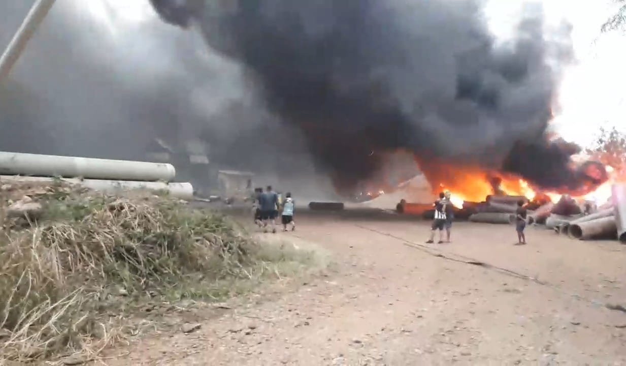 Al lugar llegaron cisternas de la Sub Gobernación entre otras unidades de ayuda para sofocar el fuego que consumía tuberías que estaban amontonadas en el sector, al lugar llegaron también los responsables de la empresa ejecutora del proyecto quienes no quisieron brindar detalles del hecho que provocó daños a sus activos, también se observó que un camión cisterna se habría quemado en parte.