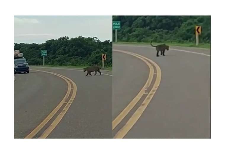 Un jaguar fue filmado caminando sobre la carretera que une a Trinidad con San Ignacio de Moxos (Beni), cerca de