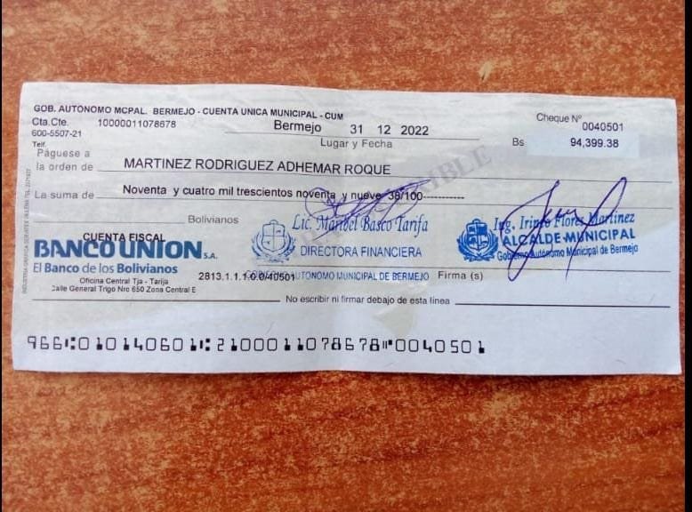 Bermejo/El Andaluz La publicación en las redes sociales de un cheque emitido por el gobierno municipal de Bermejo el 31