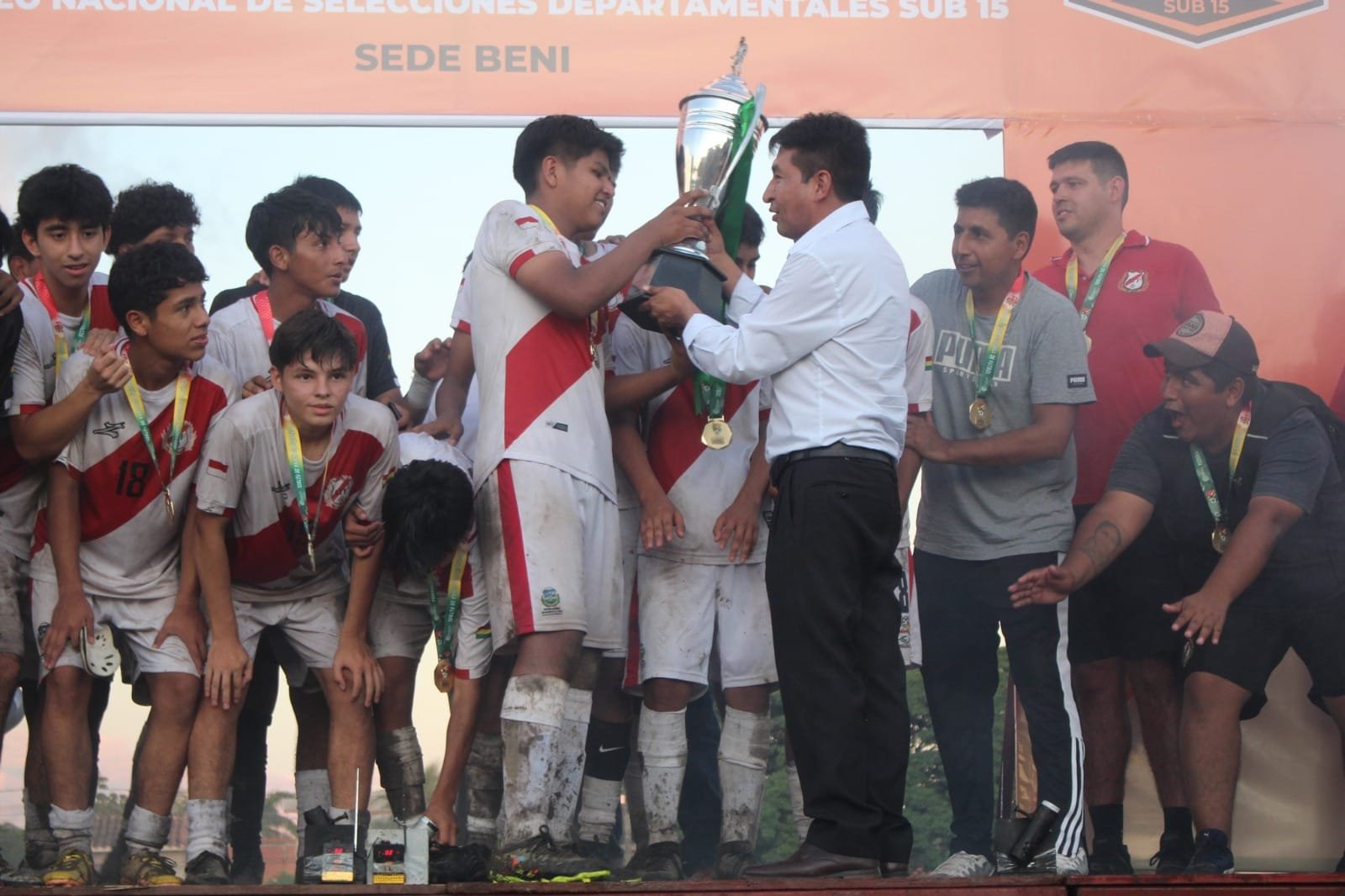 YAMIL CHOQUE MERCADO – DALE.-La selección Tarijeña de Fútbol Sub 15, se consagró campeona nacional al derrotar en la final a la anfitriona Beni por 2 goles a 1.Este domingo en el estadio Yoyo Zambrano de la ciudad de Trinidad-Beni, se jugó el partido por el título entre la selección local y la selección de Tarija, fue un partido muy disputado en medio de campo de juego en pésimas condiciones lo que no permitió a que se vea un juego vistoso, pero nuevamente salió a relucir la garra chapaca para que la selección dirigida técnicamente por Horacio Pacheco termine ganando el partido y por ende el título nacional.El seleccionado tarijeño comenzó de buena manera el partido, ya que fue contundente en ataque aprovechando el desorden del equipo local.El primer gol del partido fue favorable a Tarija, el mismo llegó por intermedio de Alejandro Torrez al minuto 8 del primer tiempo, este tanto causó el desconcierto de la selección beniana que no pudo hacer pie y provocó que Tarija siga atacando buscando un nuevo tanto.Al minuto 13 del primer tiempo llegó el segundo tanto del partido, por intermedio de Matías Espinoza quien puso el 2 a 0 en el partido.Este segundo tanto obligó a los locales al volcarse al ataque para buscar al menos descontar en el marcador, lo cual conseguirían al minuto 26 con el gol del beniano Jhon Chávez para poner el 1 a 2 en el marcador resultado con el cual terminó el primer tiempo.En el segundo tiempo, el cuadro beniano tuvo varios ataques, aprovechando el desgaste físico de los tarijeños a causa del intenso calor y la humedad del ambiente, sin embargo, los dirigidos por Horacio Pacheco cuidaron bien el resultado donde se destacó la figura del portero Julio Tárraga quien aportó para la victoria de Tarija por 2 goles a 1.En la premiación, además de la entrega de las medallas y el trofeo, se premió al jugador villamontino Dalessandro Soruco de Tarija como el mejor jugador y el goleador del campeonato.Tarija formó con: Julio Tárraga, Santiago Zenteno, Matías Espinoza, Jesús Maraude, Mateo Torres, Alberto Zúñiga, Ervin Diaz, Eduardo Huanca, Jorge Cruz, Dalessandro Soruco y Anthoni Apaza, además ingresaron desde la banca de suplentes, los jugadores: Leonel Martínez, Aaron Organivia y Ezequiel FloresCUERPO TÉCNICOHoracio Pacheco (DT), Tomas Rivas (AT), Yuri Aban (PF), Erla Cárdenas (Médico), Víctor Silvera (Delegado de campo), Andrés Vargas (Presidente de la Delegación), Néstor Bautista (Utilero)QUE SE HAGA JUSTICIAUna vez más una selección tarijeña de fútbol se consagra como la mejor del país, esperemos que esta vez el cuerpo técnico de la selección boliviana tome en cuenta a jugadores de la selección campeona para la selección nacional y no a los de un solo departamento.En el anterior torneo nacional Sub 19, también Tarija quedó en el primer lugar, pero no se tomó en cuenta a ningún jugador de este departamento para la selección nacional.Es hora de que la Federación Boliviana haga justicia con Tarija.TARIJA TIERRA DE CAMPEONES Navegación de entradasClubes orureños destacan en la tercera fecha Chuquisaca arrasa en la Copa Bolivia de Kyokushin