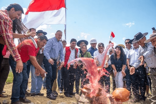 El presidente Luis Arce colocó ayer jueves la piedra fundamental para la construcción de un planta de agroinsumos en el