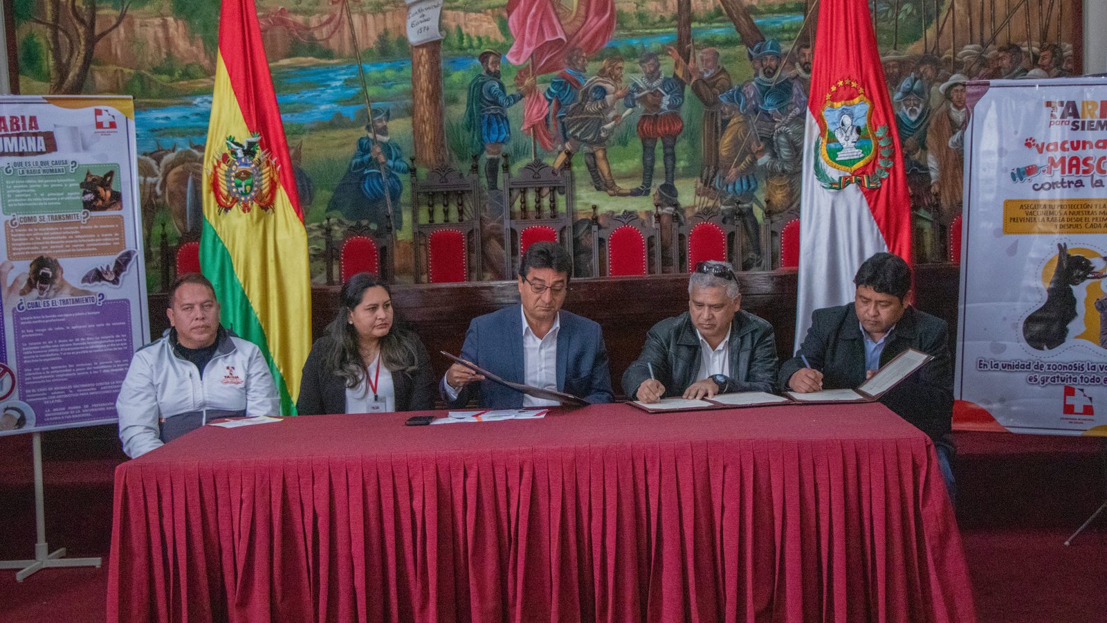 Agencias/El AndaluzCon la finalidad de frenar y erradicar los casos de rabia en la ciudad de Tarija, la Alcaldía junto a la Asociación de clínicas veterinarias firmaron un memorándum de trabajo, para hacer más efectivas las campañas de vacunación canina y felina, Al mismo tiempo se coordinaran futuras acciones para poder solucionar la sobrepoblación de perro y gatos mediante procesos de esterilización.La mencionada asociación está conformada por 34 veterinarias que colaboraran con las campañas de vacunación canina y felina. Cabe mencionar que hasta los primeros días del mes de agosto de 2023 se reportaron 12 casos de rabia canina y un caso de rabia felina en la ciudad de Tarija.“El objetivo es tener una llegada masiva de vacunación canina y felina contra la rabia, el año pasado en dos días de campaña logramos vacuna a setenta y cinco mil perros y gatos, esta año esperamos llegar y superar las ochenta mil vacunaciones contrala rabia, que es una enfermedad muy peligrosa, recomendamos a los propietarios de los canes y felinos que se acercan a las brigadas de vacunación y faciliten un poco el trabajo, quiero que cada persona entienda el sentido de la palabra cooperación entonces el tener un perro o gato como mascota representa una responsabilidad”, declaró Torres Terzo.De igual manera la máxima autoridad municipal aseveró, que a partir de la firma de dicho memorándum de trabajo, para establecer acciones que también se pueda lanzar una campaña de esterilización para poder controlar la sobrepoblación canina y felina en la ciudad de Tarija.“Podríamos establecer una convenio para que haya participación del ciudadano o dueño del perro o el felino que por ejemplo, si cualquier persona quiere hacer esterilizar a su mascota que cubra el 30 por ciento del costo de la intervención, nosotros como Alcaldía pondríamos otro 30 por ciento y el resto correría por cuenta de la clínica, es solo un ejemplo para que podamos desahogar y hacer más efectivo el trabajo que realizamos a través de la unidad de Zoonosis, porque no está bien que personas que tienen la posibilidad de pagar por una esterilización en una clínica privada sean los primeros en hacer fila en Zoonosis apara acceder de manera gratuita al servicio que nosotros brindamos”, dijo Torres Terzo.Por su parte el presidente de la asociación de animales pequeños y clínicas veterinarias de Tarija, Daniel Dávila, resaltó la importancia de coordinar los trabajos de vacunación, ya que los casos de rabia en Tarija están aumentando y podría generar una serie de consecuencias, por lo que destacó la iniciativa de la Alcaldía.“Este es el inicio de un trabajo que sea de mediano a largo plazo, para que podamos darle una solución a la sobrepoblación canina y felina, estamos trabajando con el tema de la vacunación porque es alarmante los datos que pudimos conocer entonces se debe actuar con rapidez para frenar esta situación”, explicó Dávila. Navegación de entradasGobernación comenzó entrega del Prosol 2023 entregó cheques por Bs 8 millones COD denuncia extorsión a funcionarios públicos por Julia Ramos y Aldo Velásquez a nombre del pacto de unidad