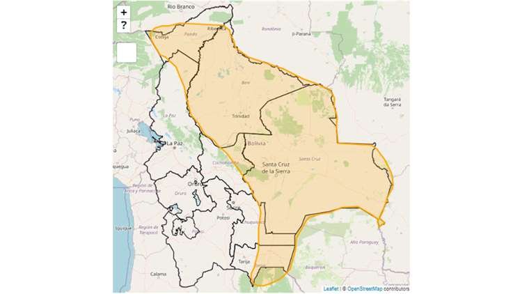 En el caso de Santa Cruz, según Senamhi, la afectación se registra en “Cordillera, Busch, Sandoval, Chiquitos, Ibañez, Florida, Vallegrande, Caballero, Ichilo, Warnes, Sara, Santiesteban, Chávez, Velasco y Guarayos”.