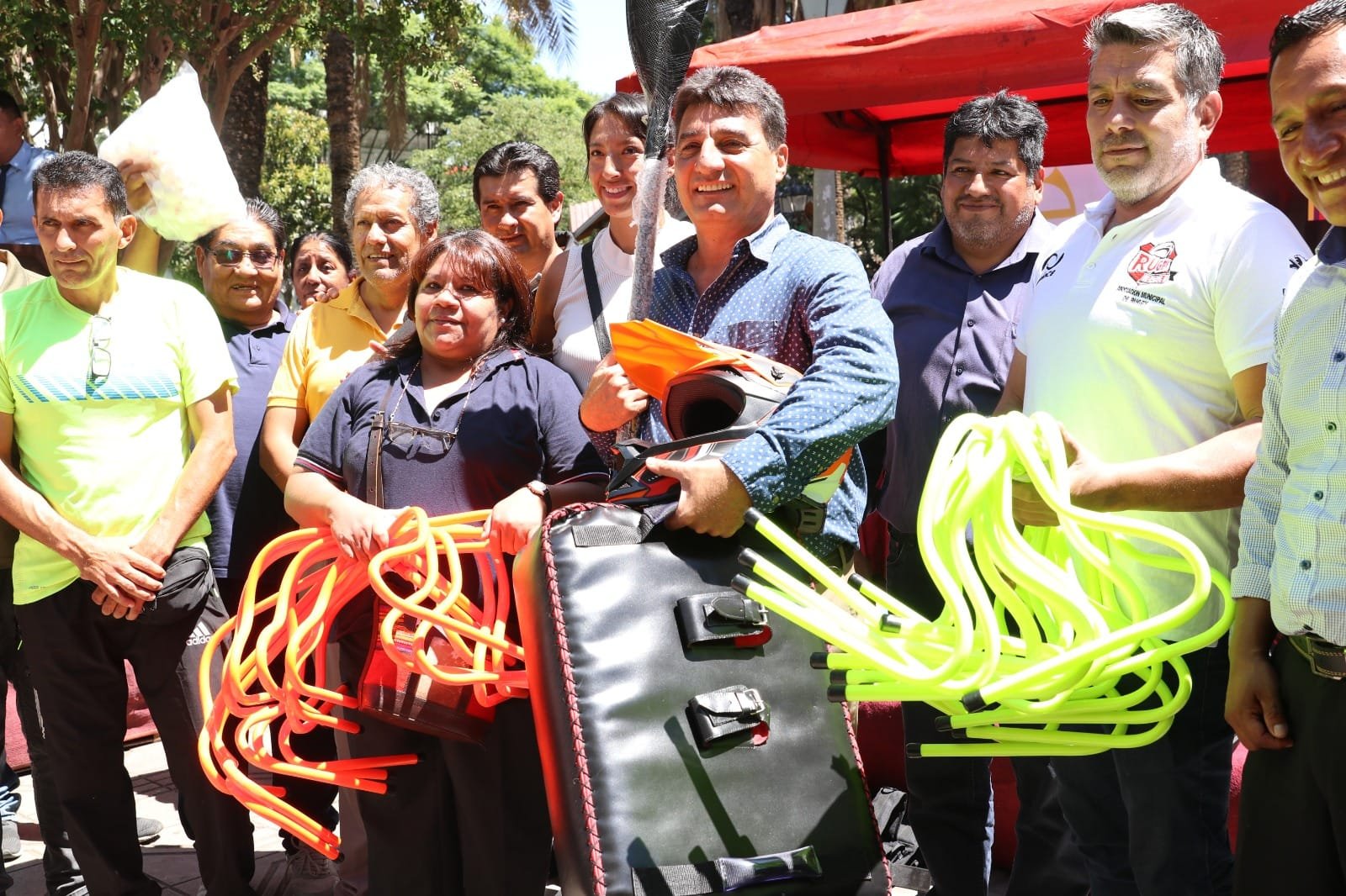 Alcalde Johnny Torres entrega material deportivo a 27 Asociaciones municipales de Tarija